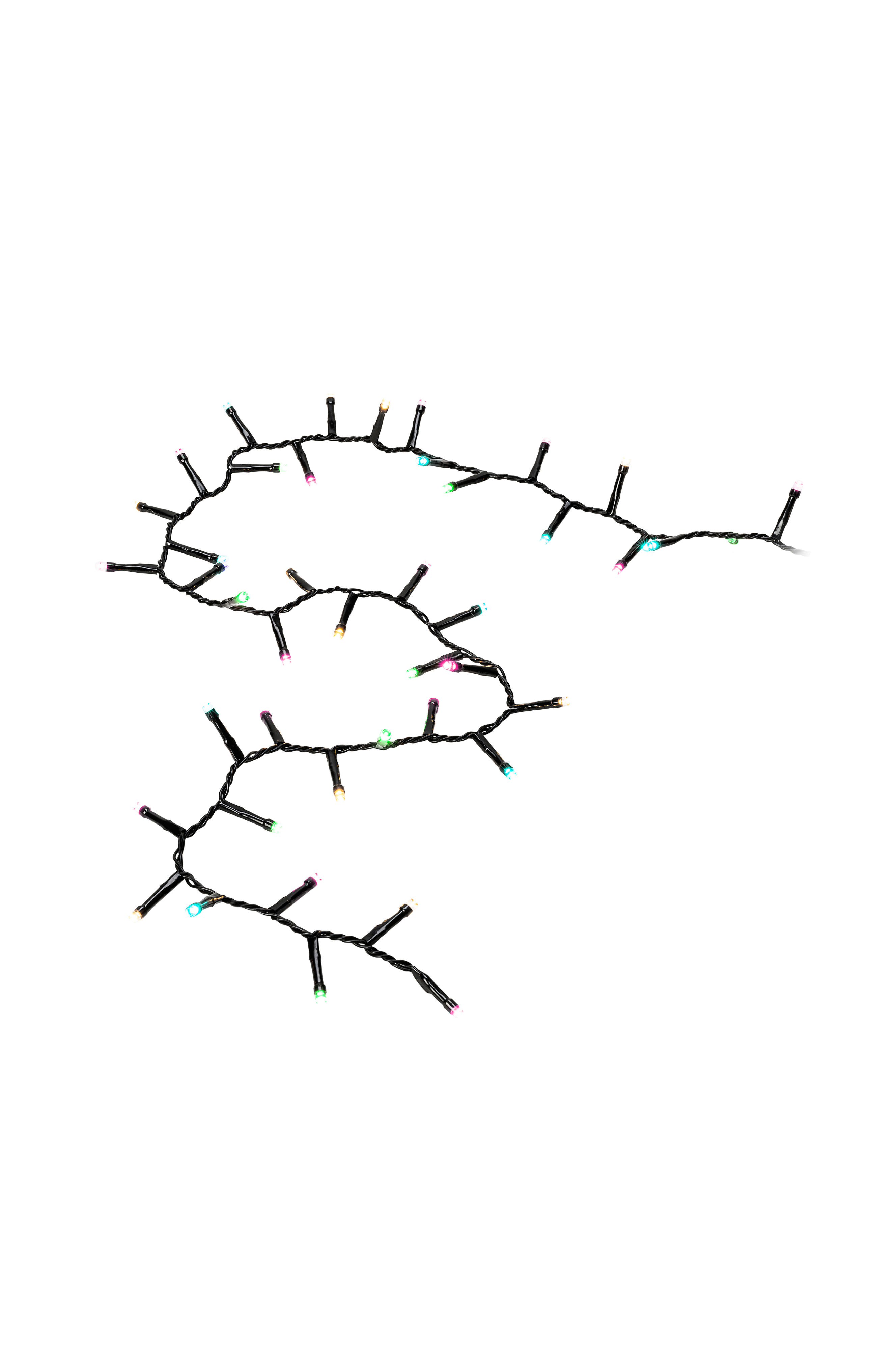 En färgglad klusterljusslinga med led-lampor i mjuka pastellfärger i rosa, turkos och gult. Den ger ett lekfullt, mysigt sken - perfekt för både inomhus, utomhus och som en festlig, färgglad touch till jul!