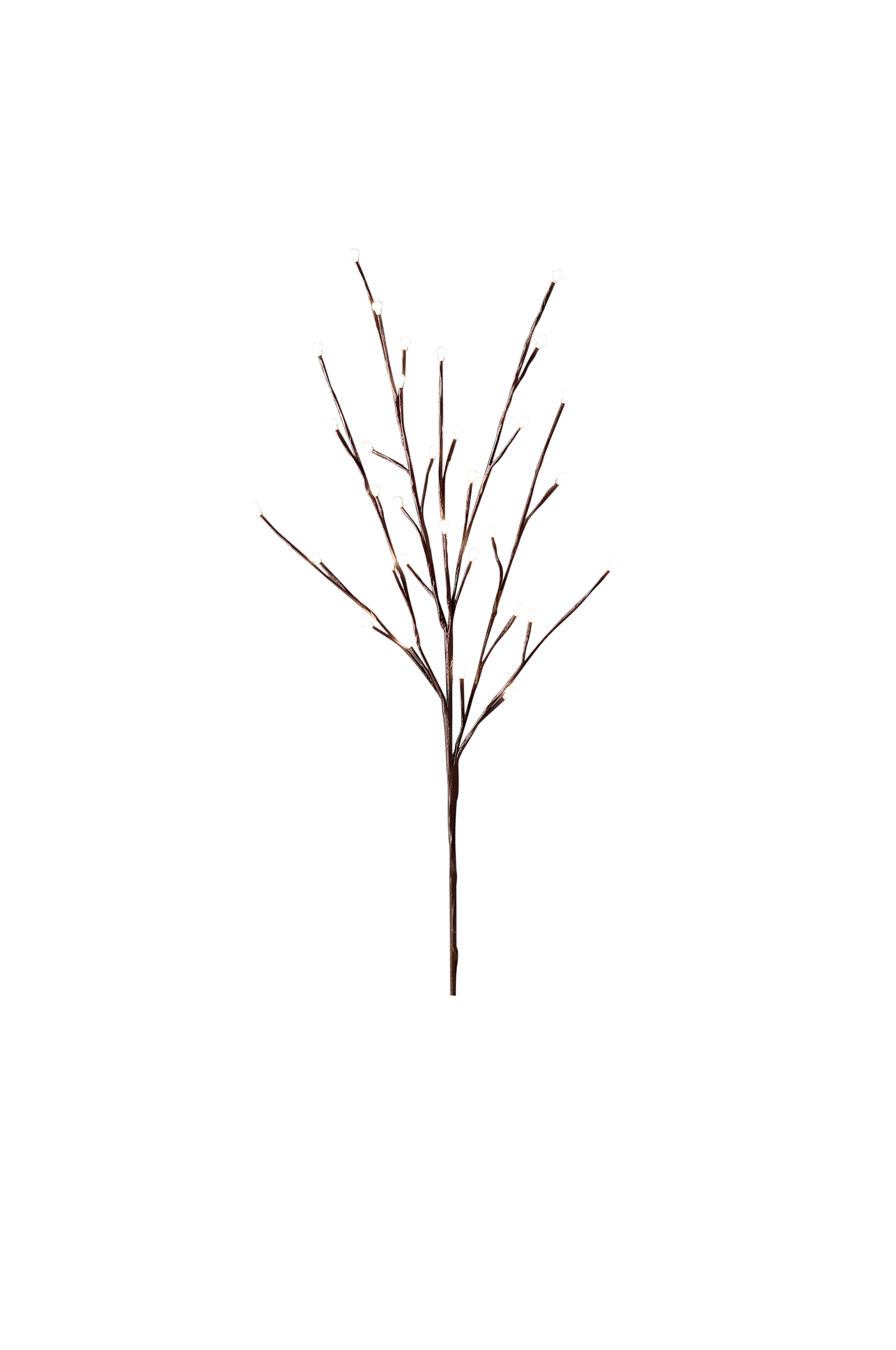 Dekorativ kvist med 32 amberfärgade LED-lampor. Kvisten är anpassat för utomhusbruk. Konstant gnistrande effekt. Anslutningskabeln är 5 meter. Höjd 100 cm, bredd 45 cm.