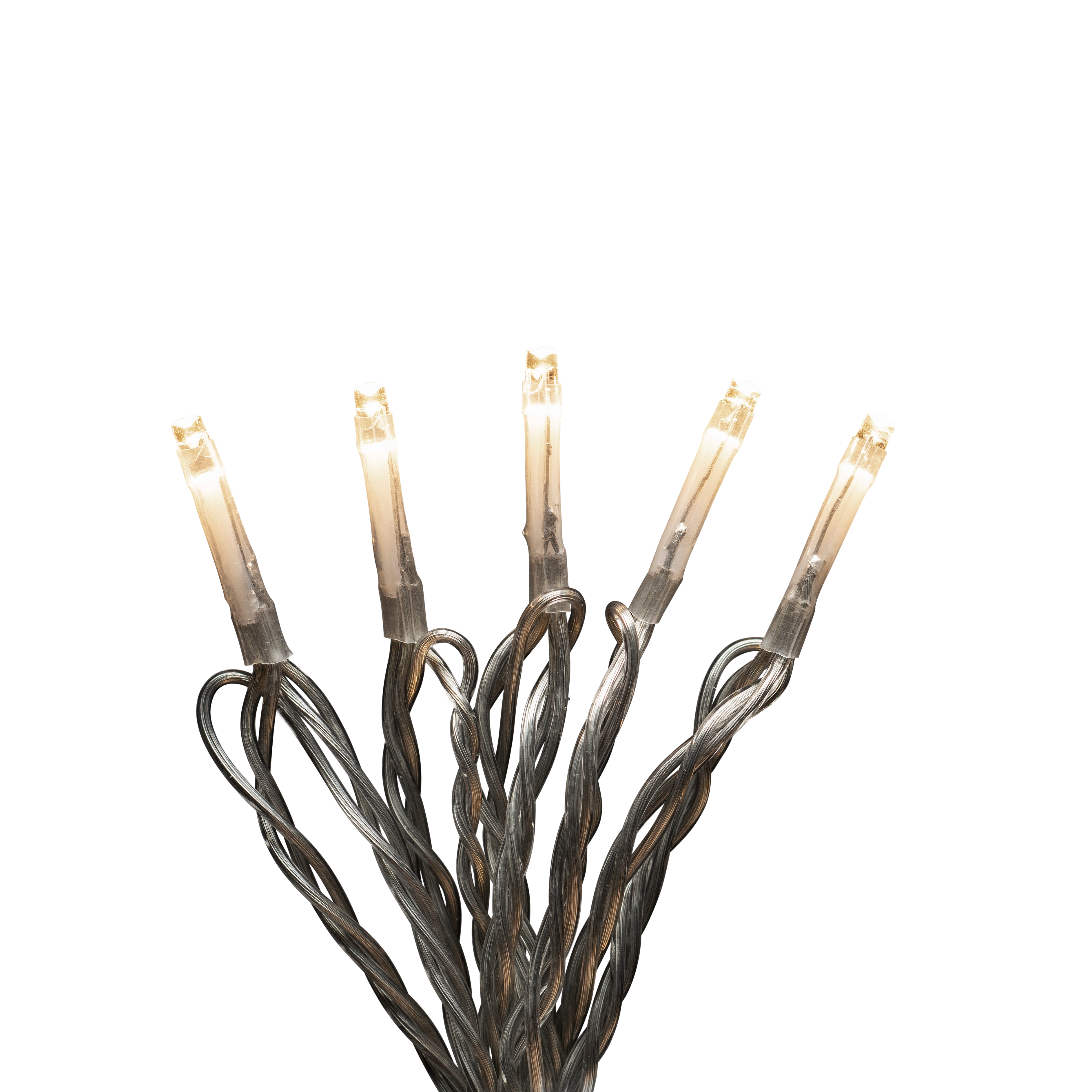 Transparent ljusslinga med 20 varmvita mikroled-lampor. Den är 304 cm lång med en 1000 cm lång anslutningskabel och fungerar både inomhus och utomhus. Drivs av en 24v transformator.