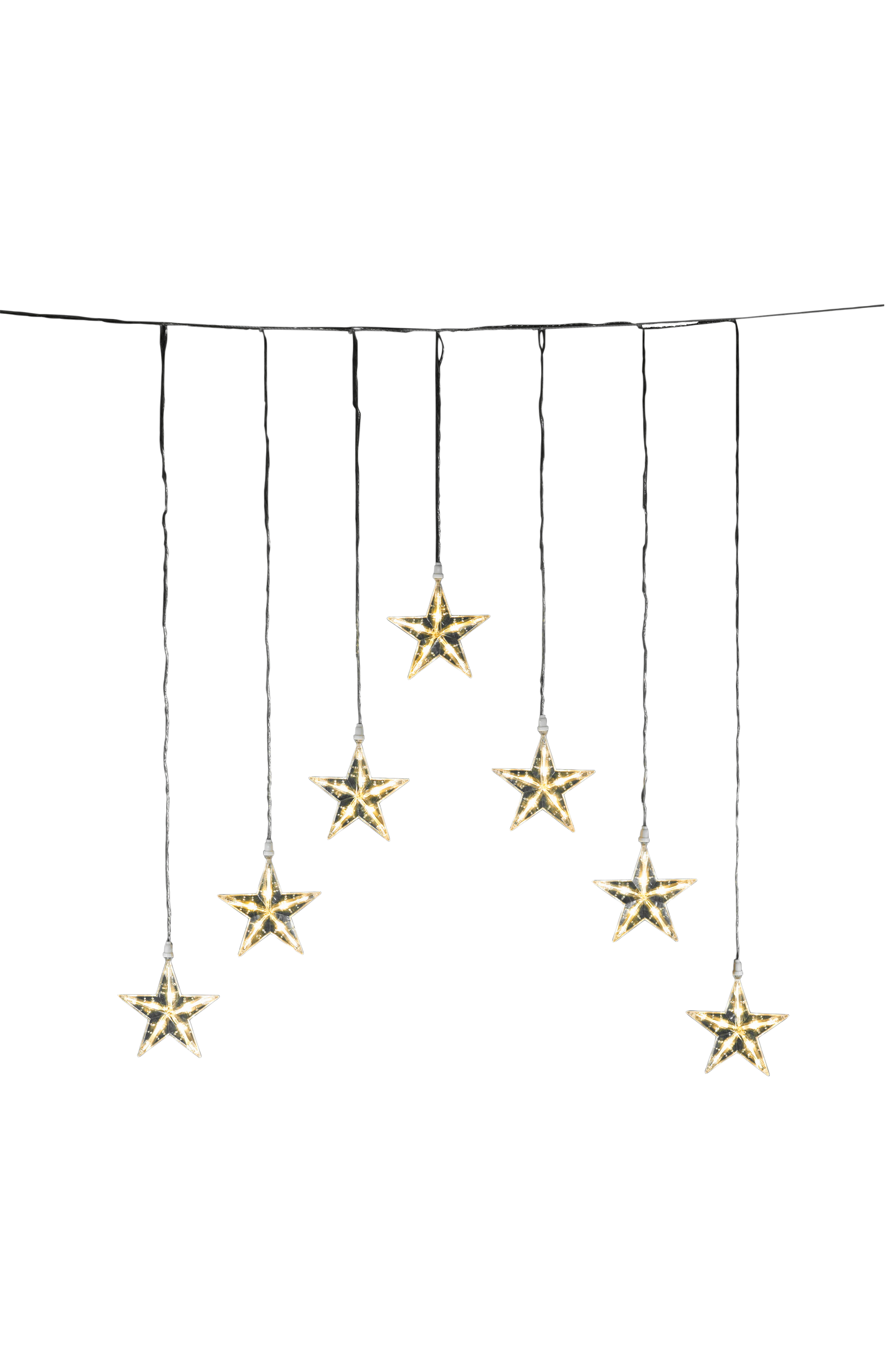 Ljusslinga med sju stjärnor och 35 led-lampor. Den sträcker sig 116 cm ner till den lägst hängande stjärnan och är 76,2 cm bred. Godkänd för utomhusbruk med en transparent kabel och en 5 m lång anslutningskabel. Drivs av en 24v transformator.