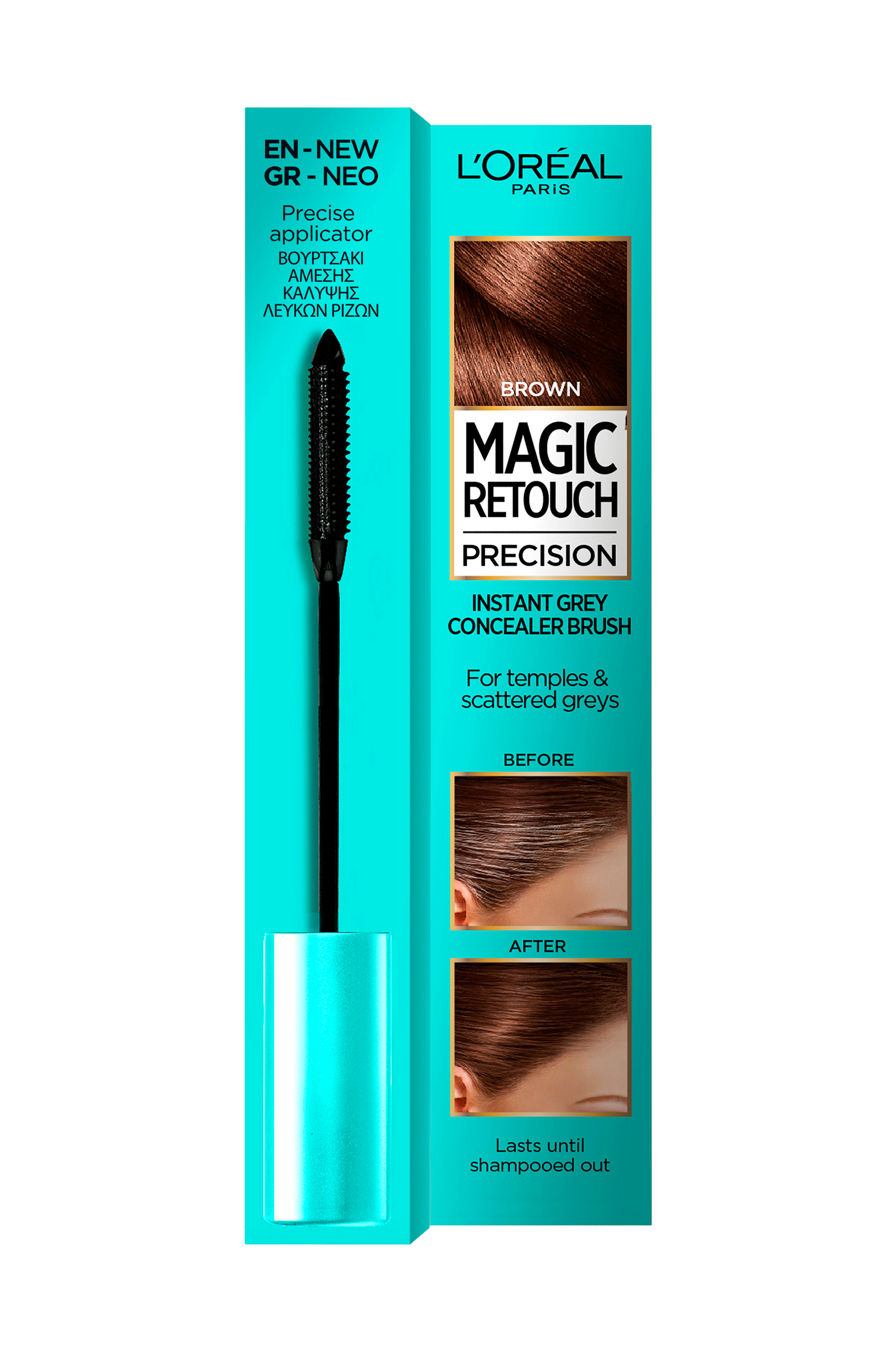 Färgborste för tillfällig täckning av gråa hår. Lätt och precis applicering.