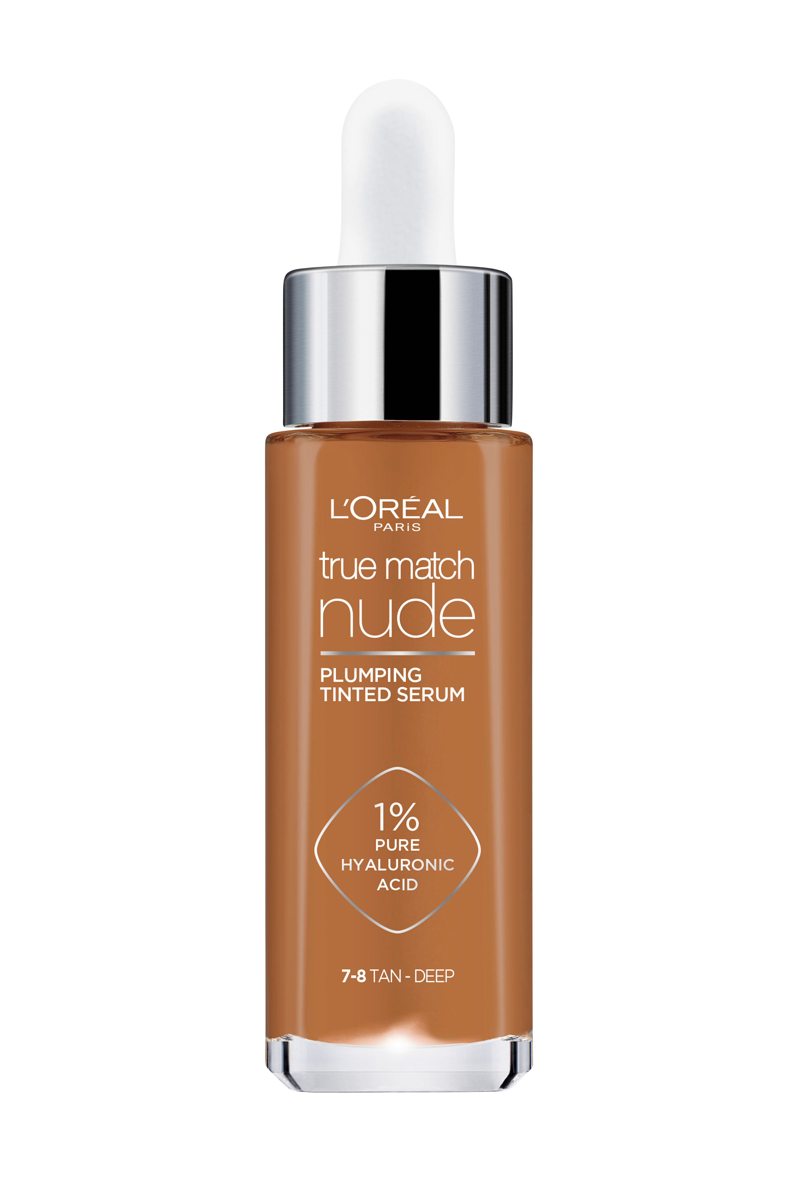L'Oréal Paris True Match Nude Plumping Tinted Serum är en plumping serum foundation utan parfym som gör huden återfuktad och fyllig. Ingredienser som 1% hyaluronsyra, glycerin och mineralpigment ger en lätt täckning utan att täppa till porerna för ett återfuktat, fylligt resultat i upp till 24 timmar. På 1 timme är huden 24 %* mer återfuktad och synbart fylligare. Applicera några droppar i ansiktet och tona ut i en nyans som passar din hudton för en slätare hy med ett naturligt skinande resultat! Testad under dermatologisk kontroll. Passar alla hudtyper, även känslig.