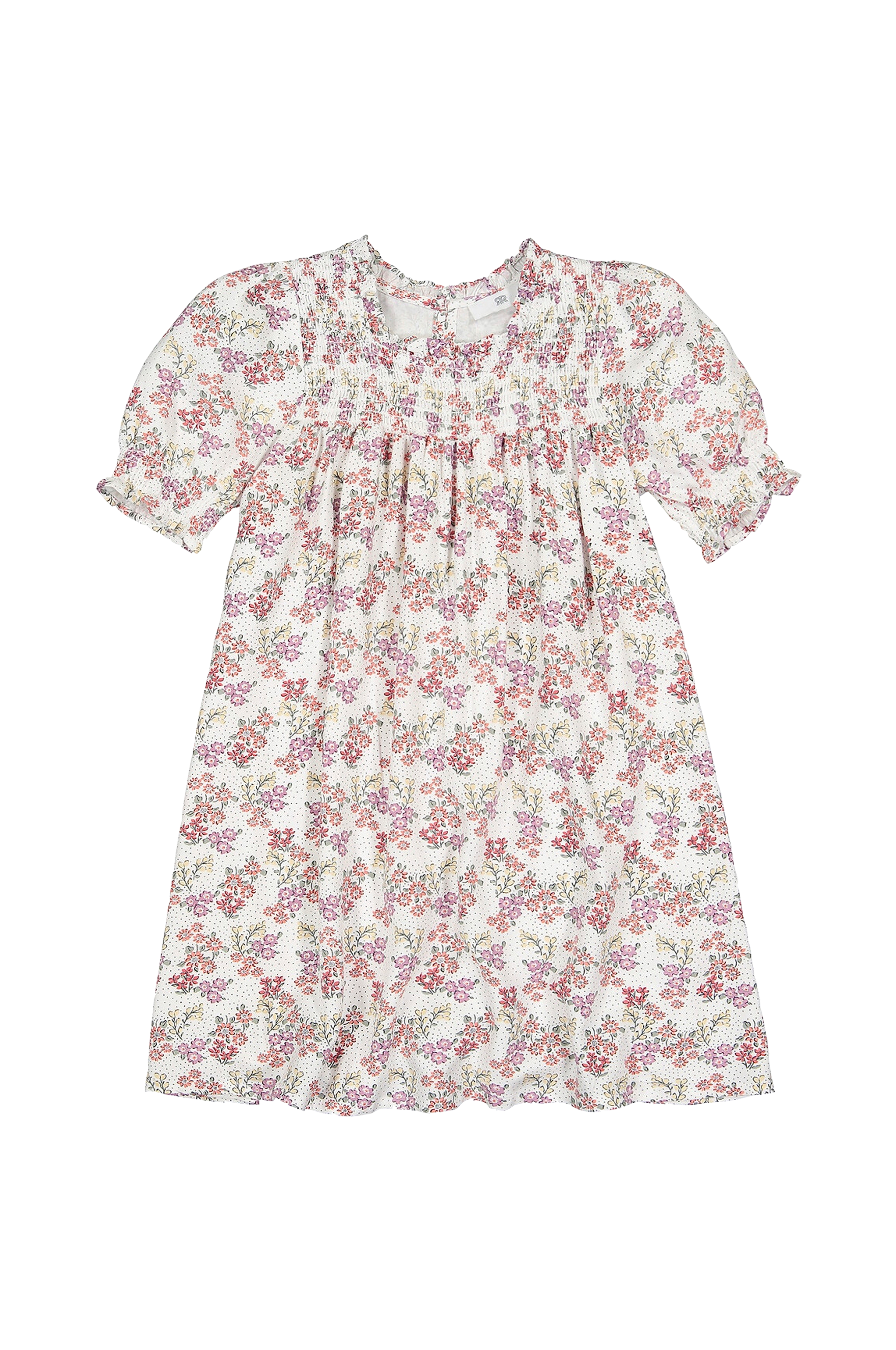 Detaljer - Utställd modell - Midilängd - Kort ärm med smock i ärmslut - Kantig halsringning - Skärning med rynkning vid bröstet och smock upptill - Tryckt mönster - Droppformat sprund med knapp bak Material och skötselråd - 100% viskos - Fintvätt 30° - Stryks på medeltemperatur / tål ej blekmedel - Tål ej torktumling - Tål ej kemtvätt Ansvarsfull produkt - Välj en produkt av materialet ECOVERO™, så konsumerar du mer ansvarsfullt. ECOVERO™ är ett hållbart viskosmaterial: det är en textil fiber som framställts av trämassa från FSC- eller PEFC-certifierade skogsbruk som drivs på ett hållbart sätt. Dessa skogsföretag omplanterar träd i en takt som gör att skogen förnyas. För ett bättre liv idag och imorgon.