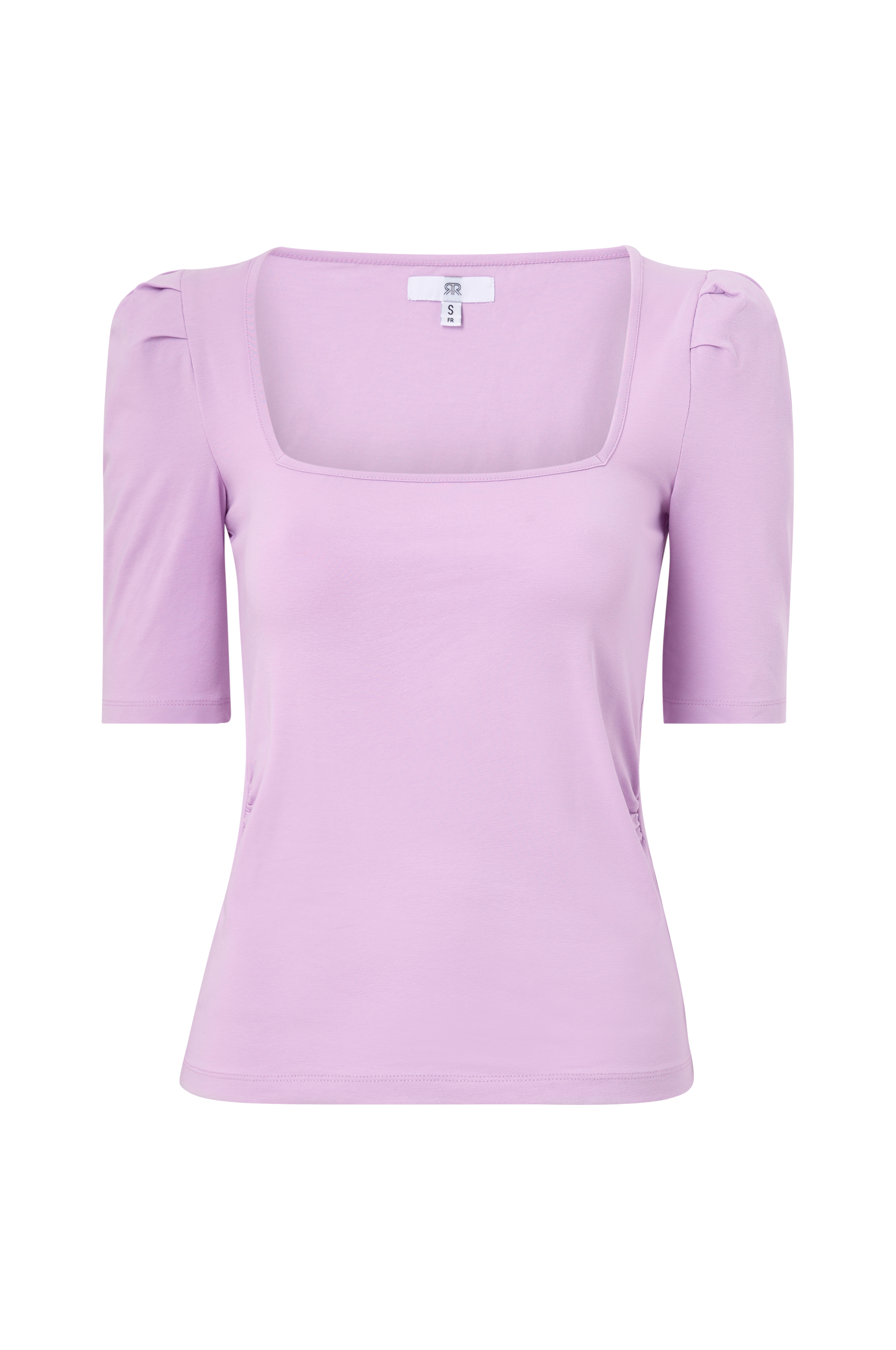 Originell topp med smickrande passform. Kvinnlig modell i bomullsstretch som anpassar sig perfekt till kroppen. Detaljer