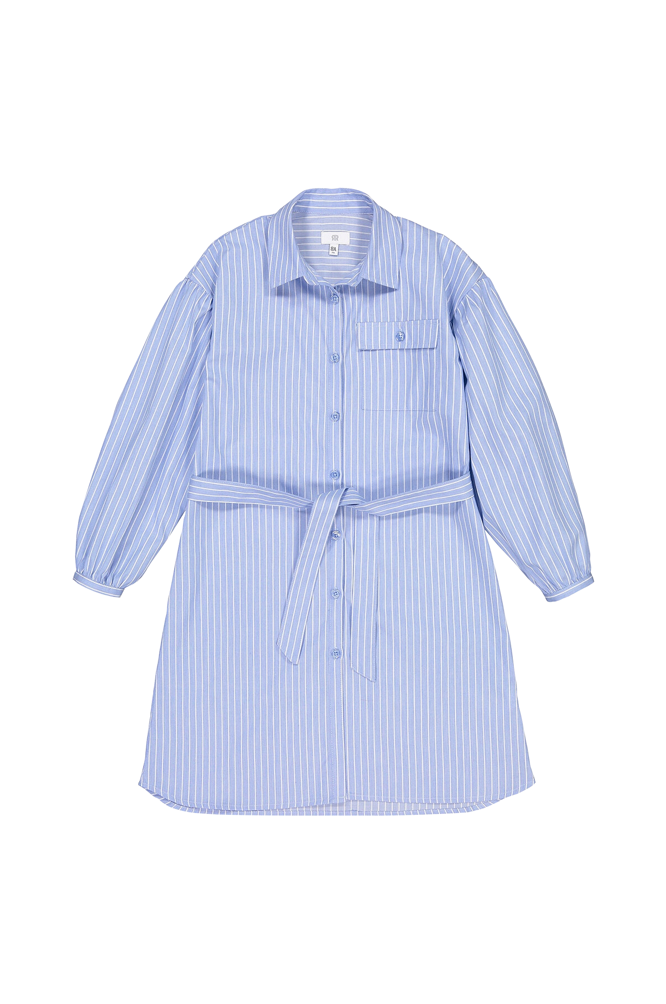 Detaljer - Utställd modell - Längd till knät - Lång puffärm med knappar - Skjortkrage - Randigt mönster - Knäppning fram - Bröstficka med lock och knapp - Fastsytt knytskärp Material och skötselråd - 100% bomull - Maskintvätt 40° - Stryks på medeltemperatur / tål ej blekmedel - Torktumling på medeltemperatur - Tål ej kemtvätt