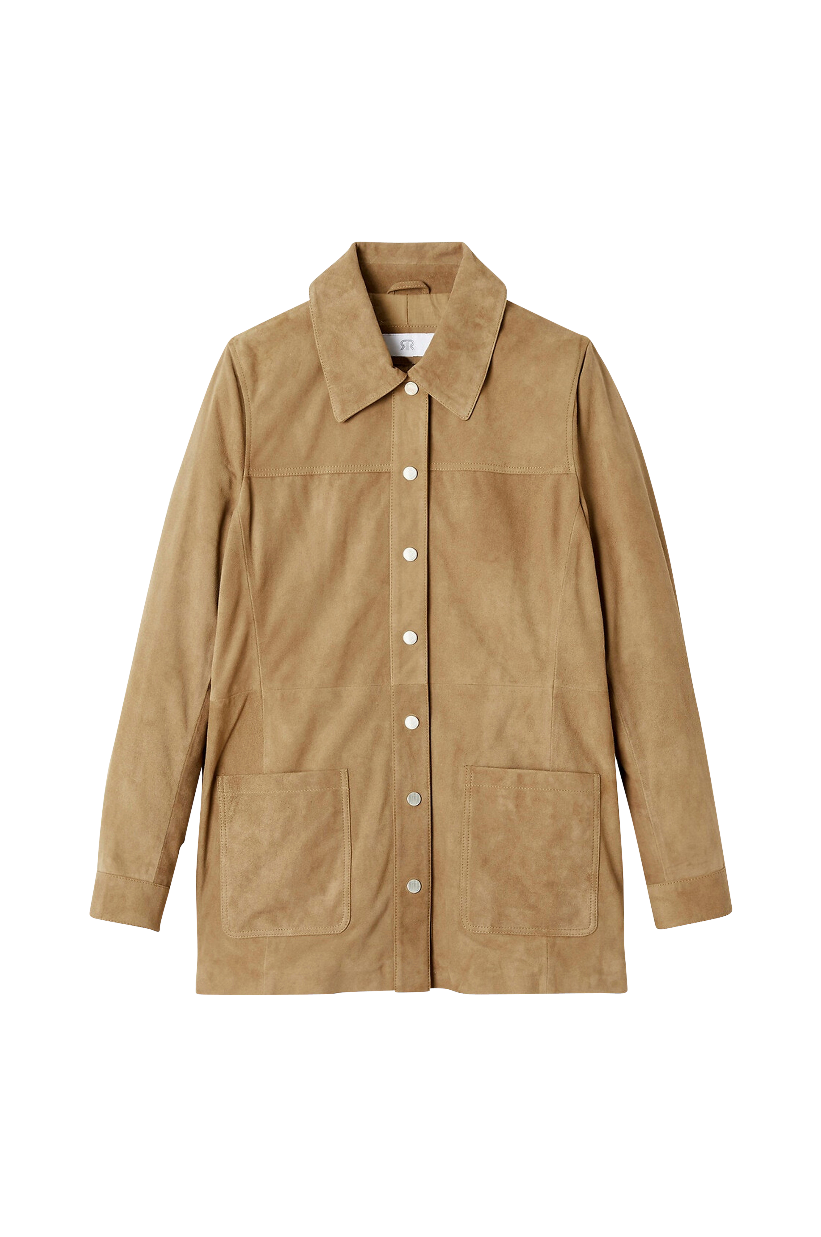 Trendig skjorta i mocka. Mjukt och lätt material. Detaljer - Halvlång modell - Krage - Öppning med tryckknappar Material och skötselråd - Huvudsakligt material: 100% mocka - Foder i liv: 100% bomull - Foder i ärmar: 100% polyester - Tål ej maskintvätt - Tål ej strykning / tål ej blekmedel - Tål ej torktumling - Tål ej kemtvätt Ytterligare information: - Tryckknappar fram - 2 påsydda fickor fram - Längd 76 cm i storlek 38