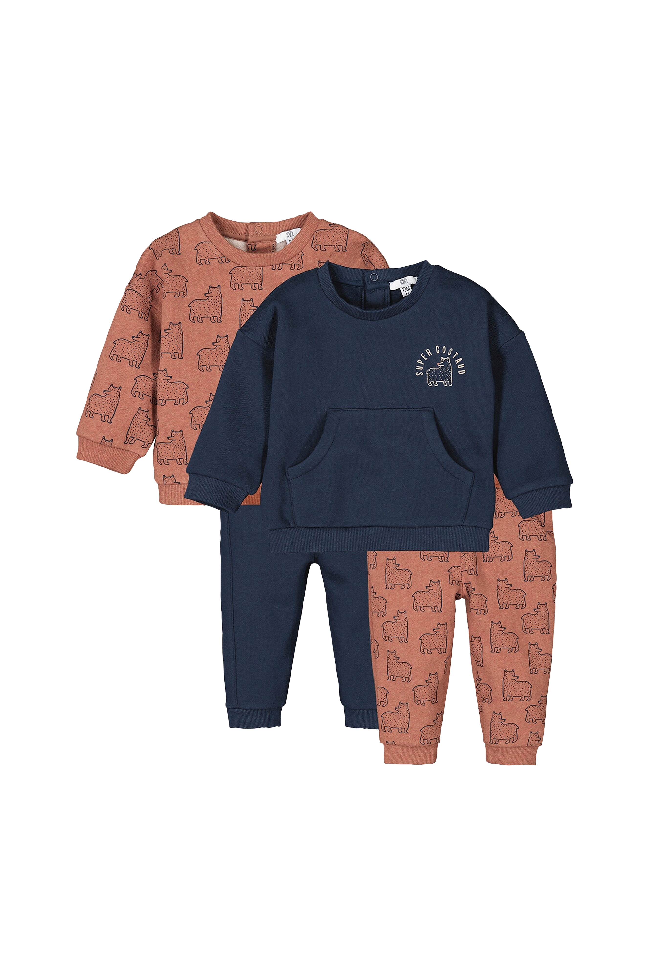 Set i två delar i varmt och mjukt sweatshirtmaterial med två tröjor och två joggingbyxor.