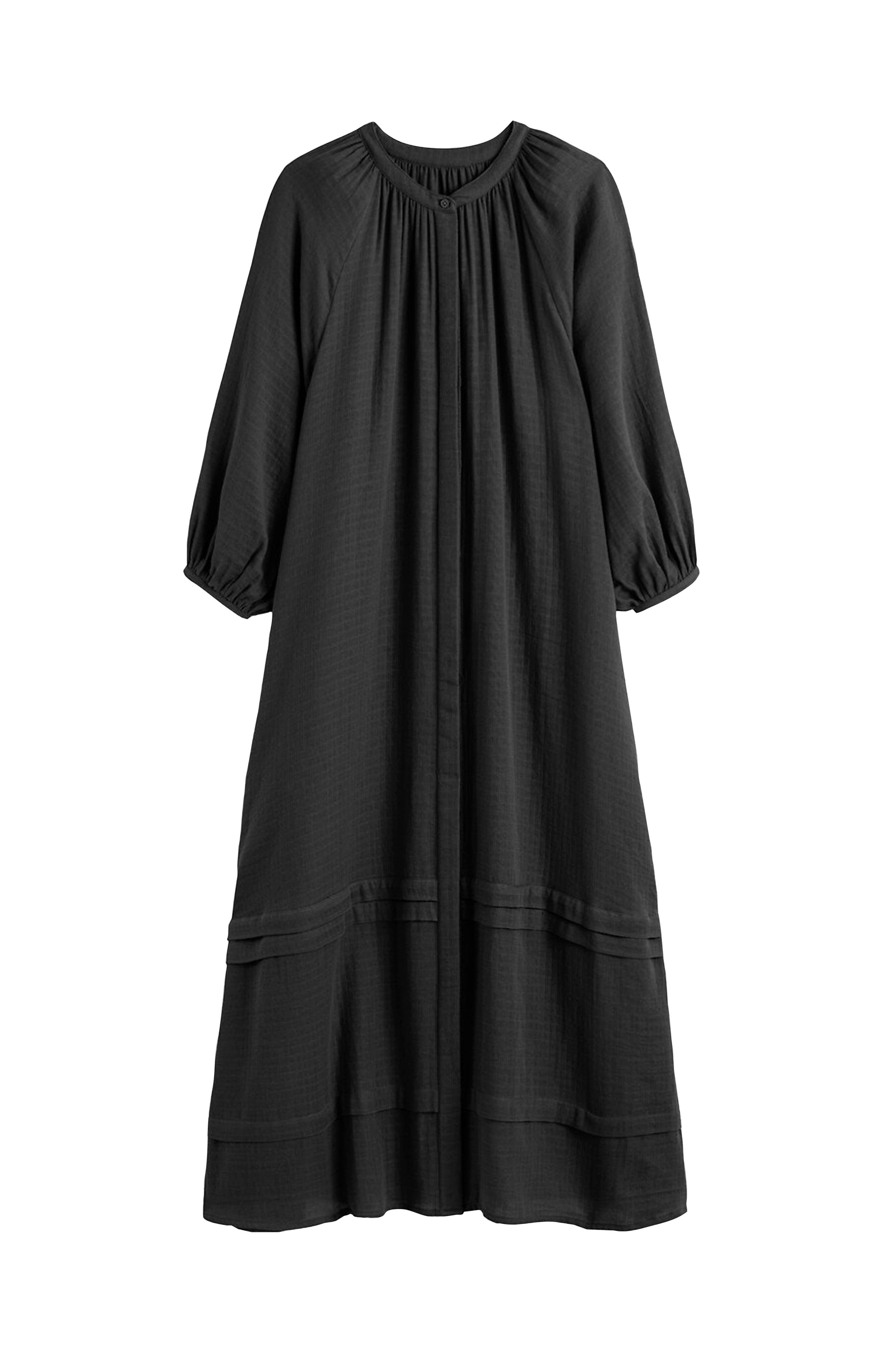 Lång klänning i bomullsväv, ett mjukt och luftigt tyg med lätt våffelstruktur som är mycket bekvämt. Utställd modell med stor rörelsefrihet. Snygg bohemstil. Detaljer