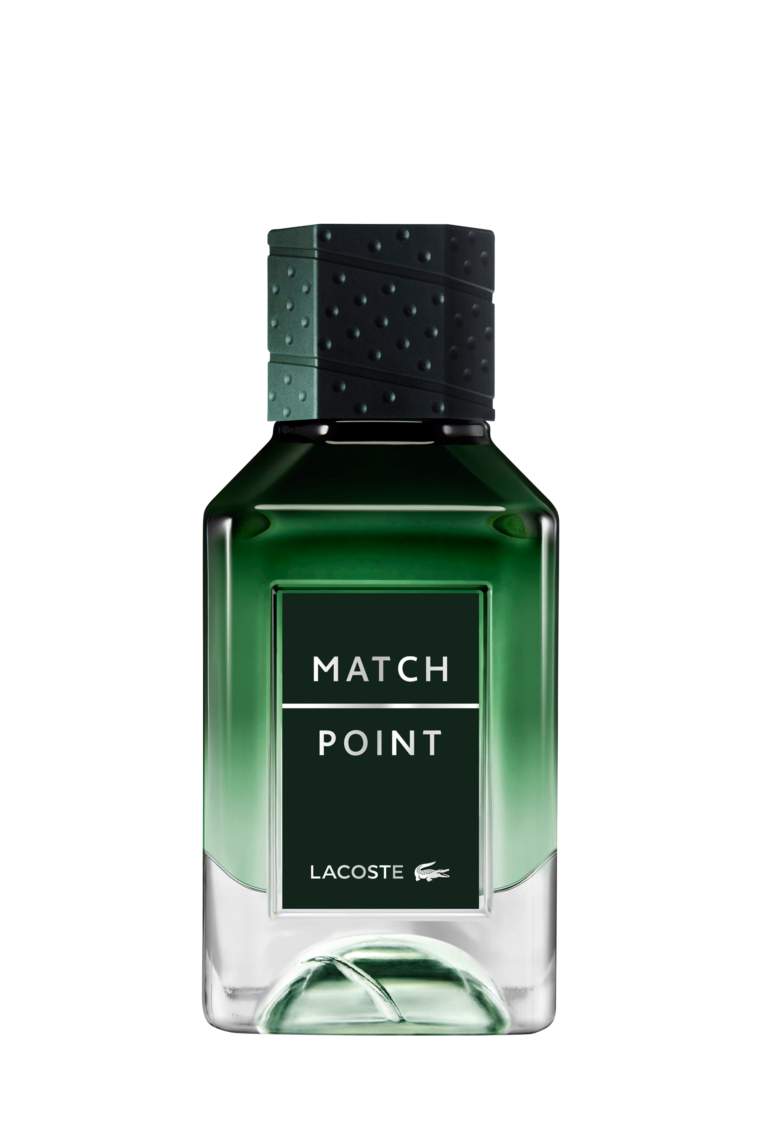 Match Point Eau de Parfum för män presenteras i en elegant flaska inspirerad av koderna inom tennisens värld, där den gröna färgen representerar den intensiva spänningen vid det avgörande slaget.