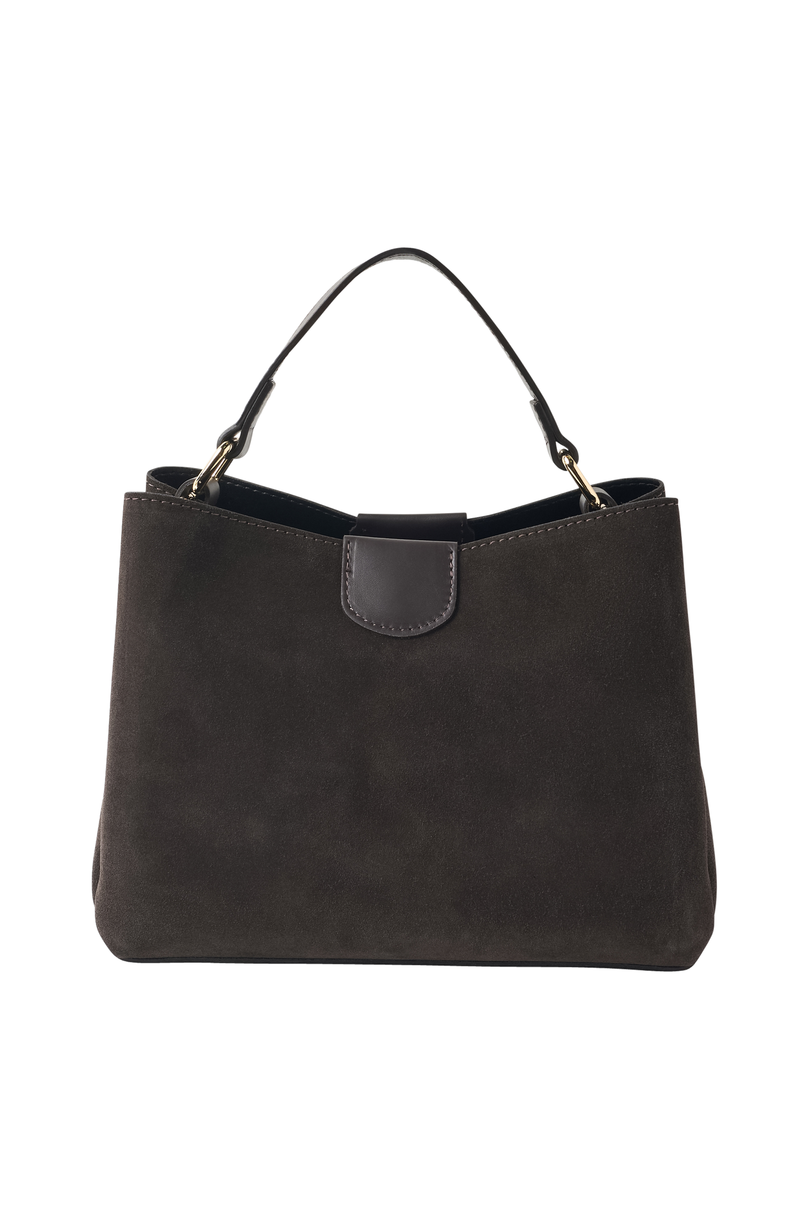 • Handväska i mocka• Bärhandtag• En justerbar, avtagbar axelrem• Huvudfack med tryckknappsstängning• En invändig väska med dragkedjestängning och ett dragkedjefack• Textilfoder