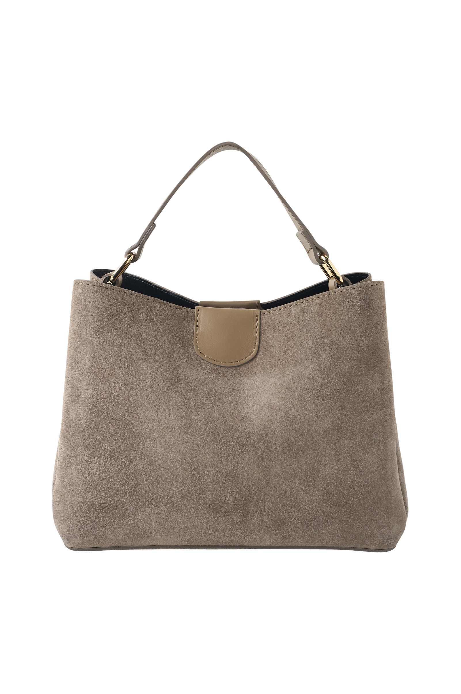 • Handväska i mocka• Bärhandtag• En justerbar, avtagbar axelrem• Huvudfack med tryckknappsstängning• En invändig väska med dragkedjestängning och ett dragkedjefack• Textilfoder