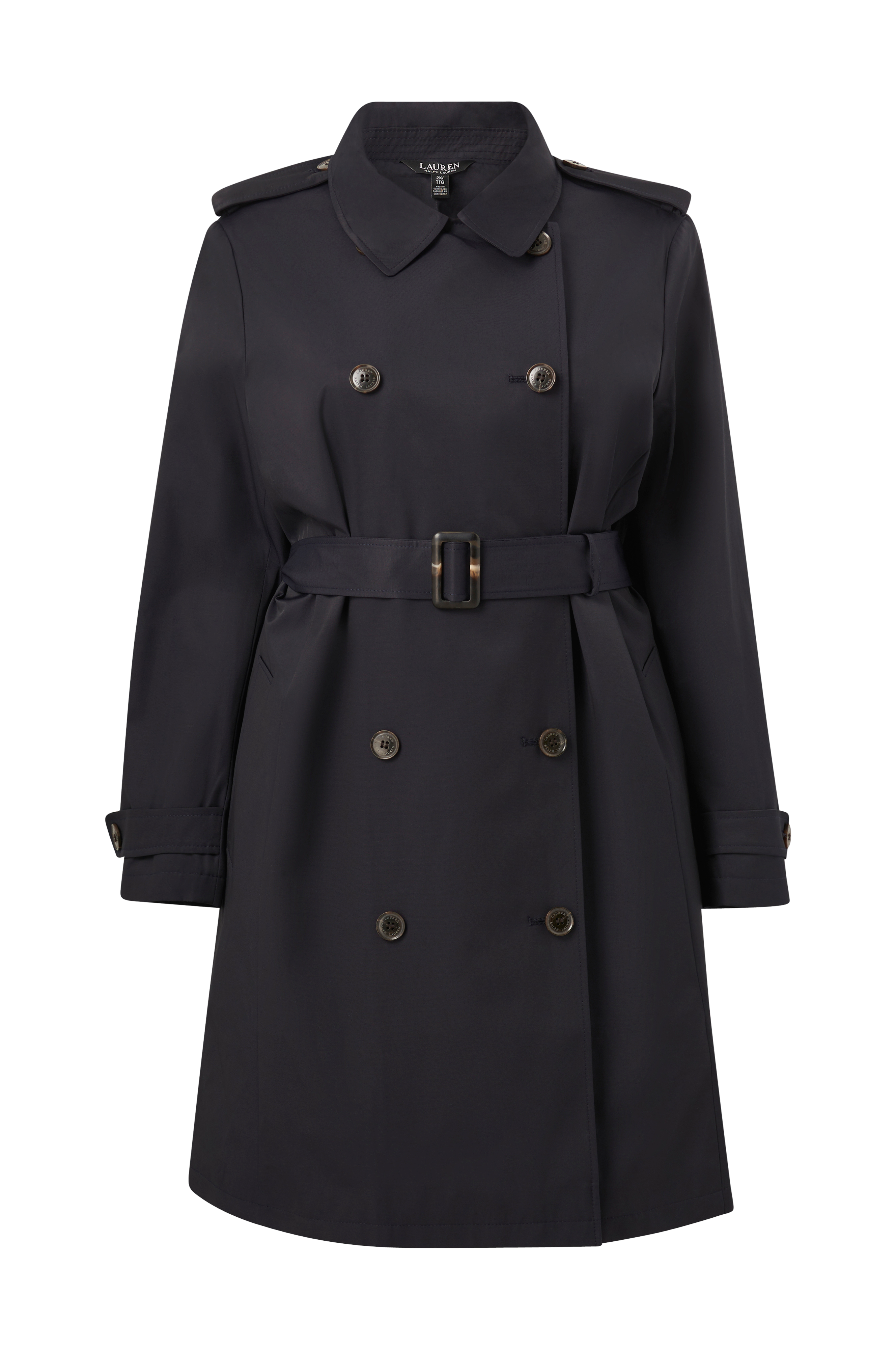 • Klassisk kappa• Dubbelknäppning• Skärp i midjan• Fickor i sidorna• Slits bak• Vävt foder• Längd: 100 cm i storlek 2XL