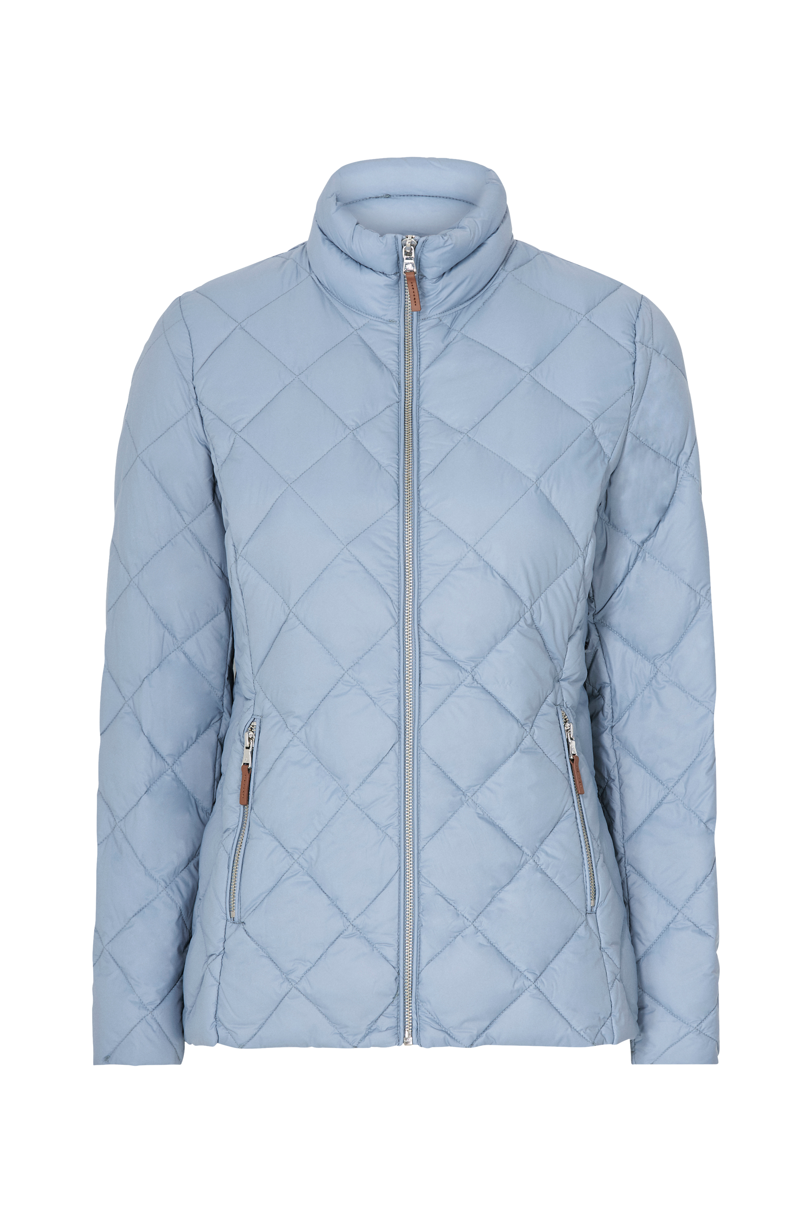 • Quiltad dunjacka med en lättviktsmodell• Hög krage• Dragkedja• Dragkedjeficka• Mönstrat foder• Tryckknappar nedtill i sidorna• Längd: 65 cm i storlek S