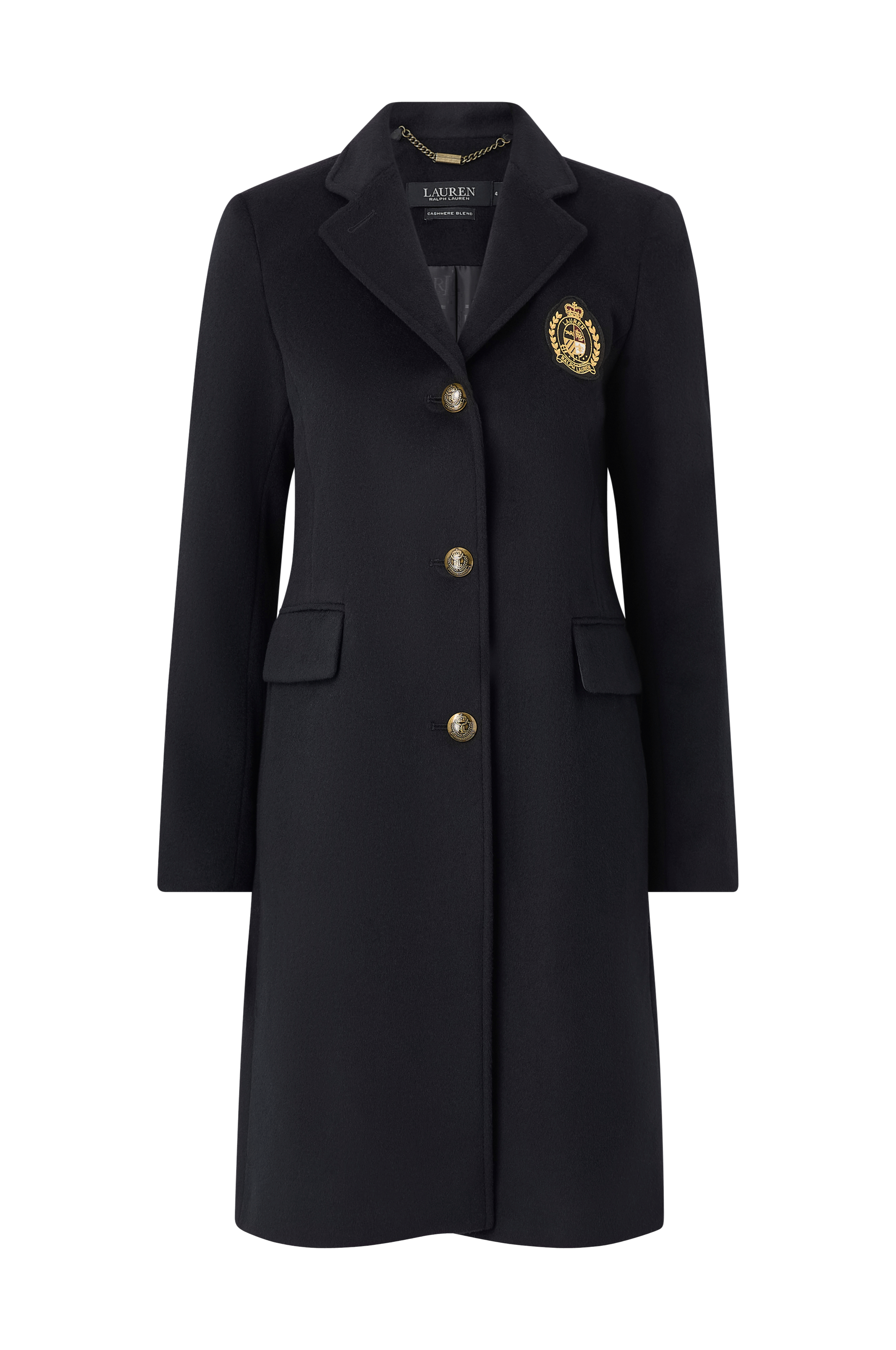 • Mjuk, fodrad kappa i ull och cashmereblandning• Krage med slag• Knappar i ärmsluten• Logomärke på bröstet• Knappstängning• Två passpoalfickor• Slits nedtill bak• Normal passform• Längd: 96 cm i storlek 4
