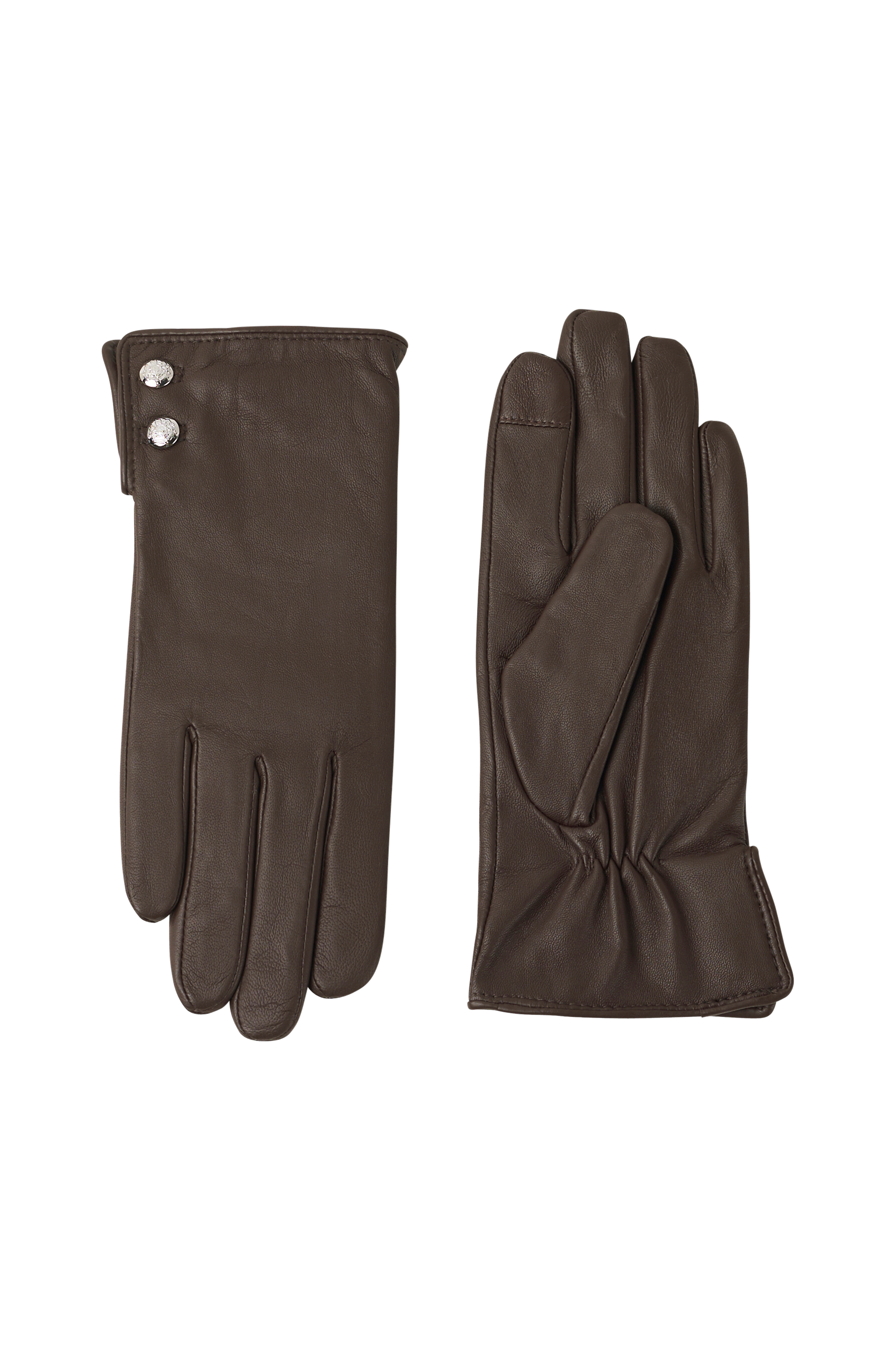 • Handskar i skinn• Två silverfärgade knappar i metall• Borstat textilfoder