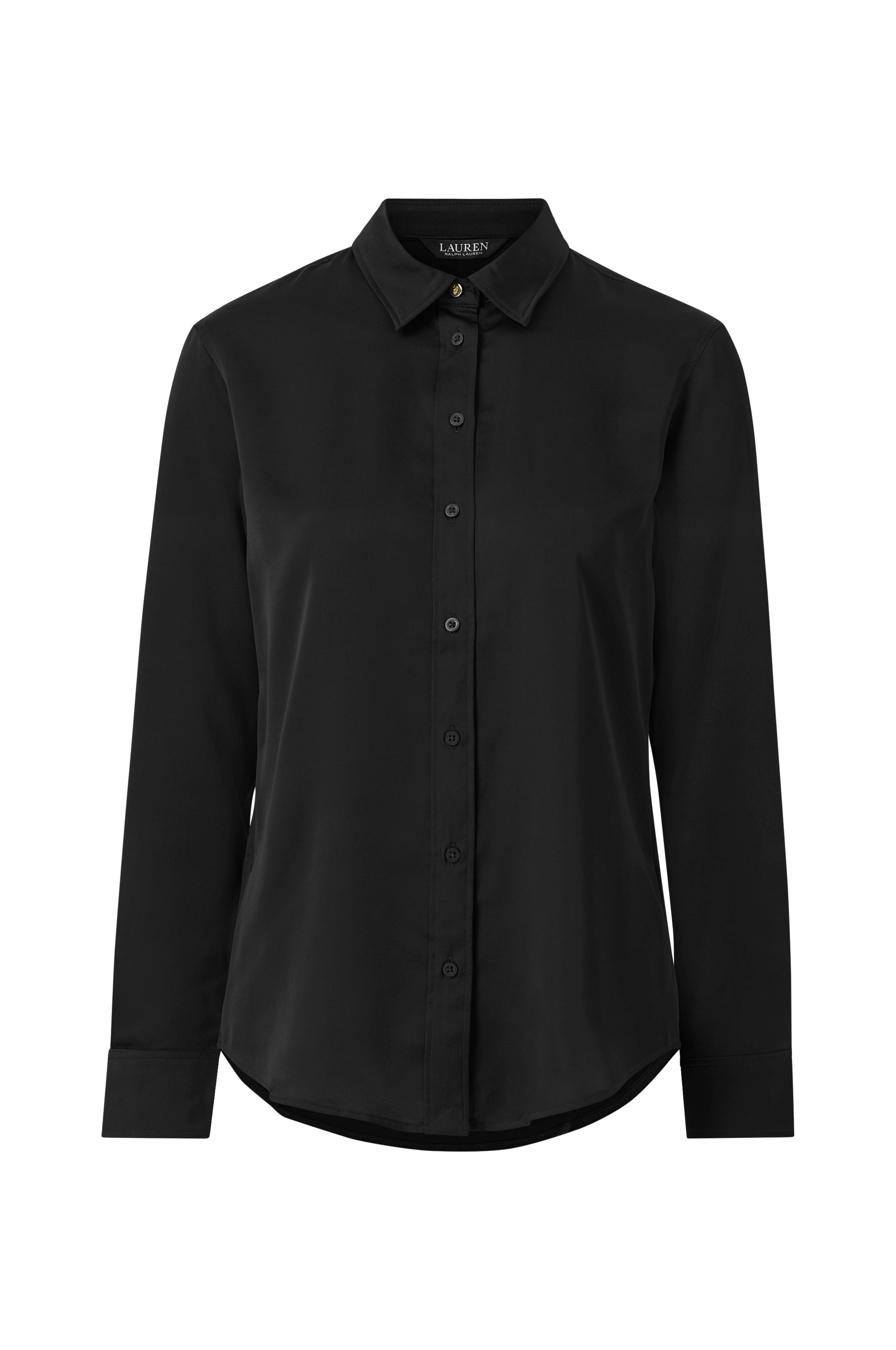 • Modell i satin• Liten krage• Lång ärm med manschett• Rundad nederkant