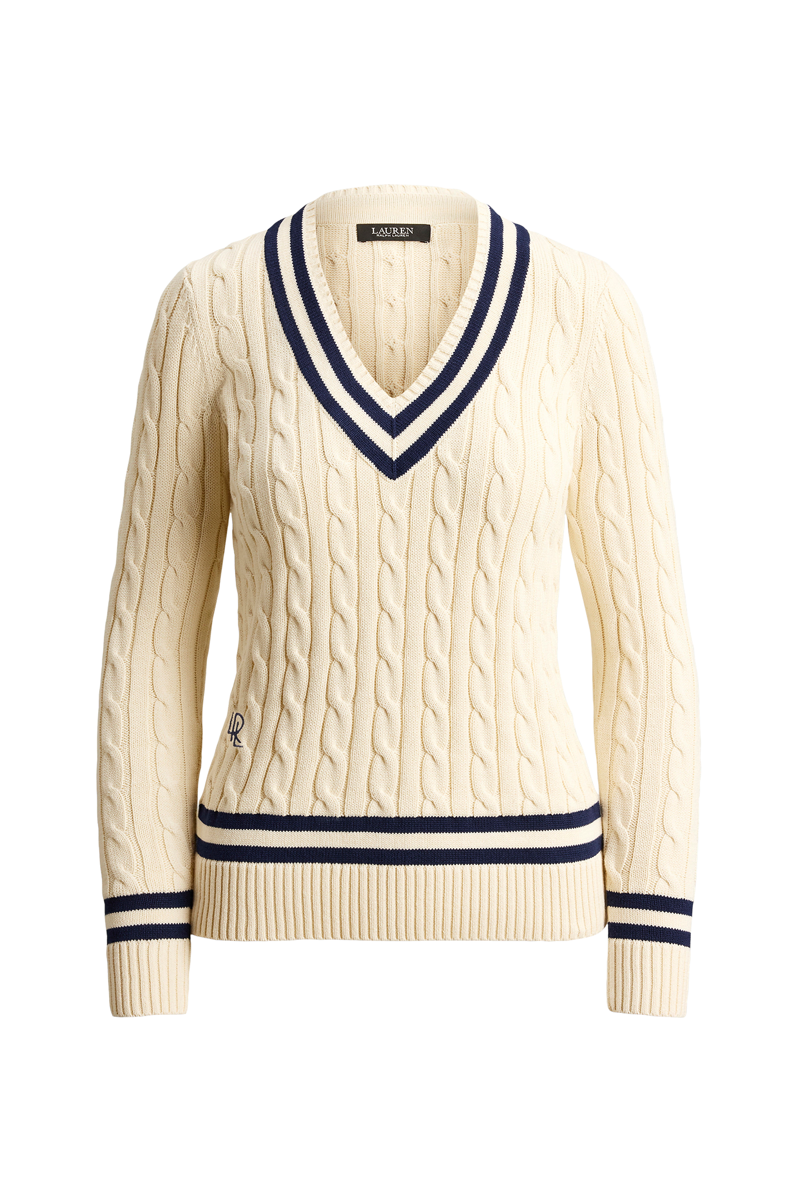 • Kabelstickad tröja• V-ringning• Broderad logga nedtill fram