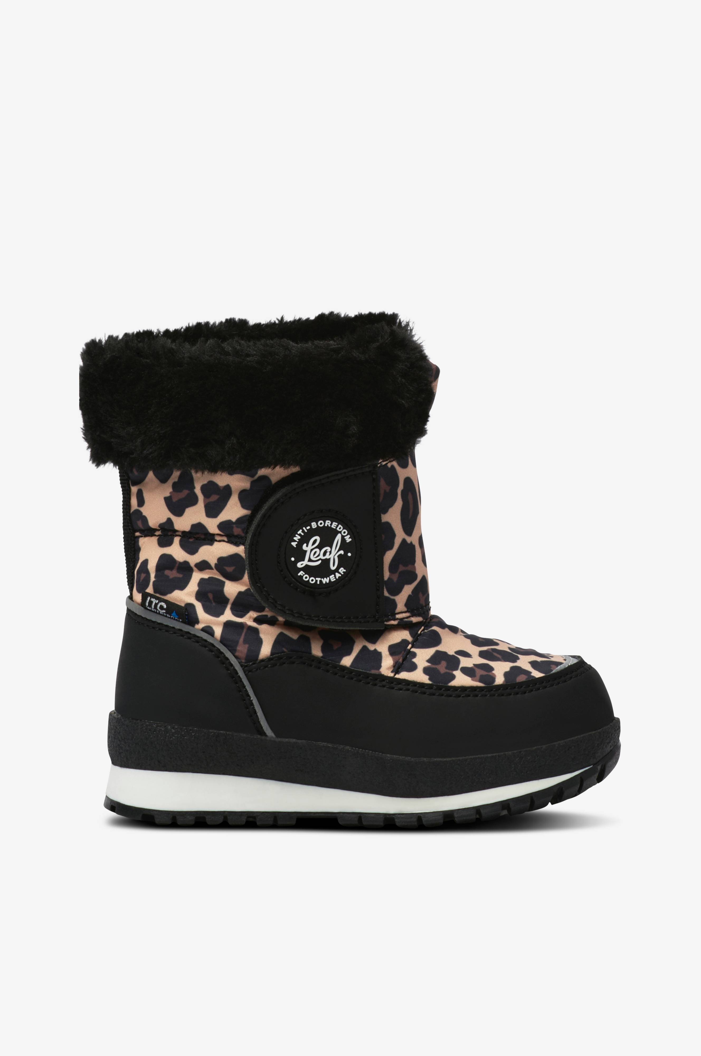 • Hög, vattentät modell med foder i fuskpäls• Ovandel i skinnimitation• Bred kardborreslejf fram• Greppsäker yttersula