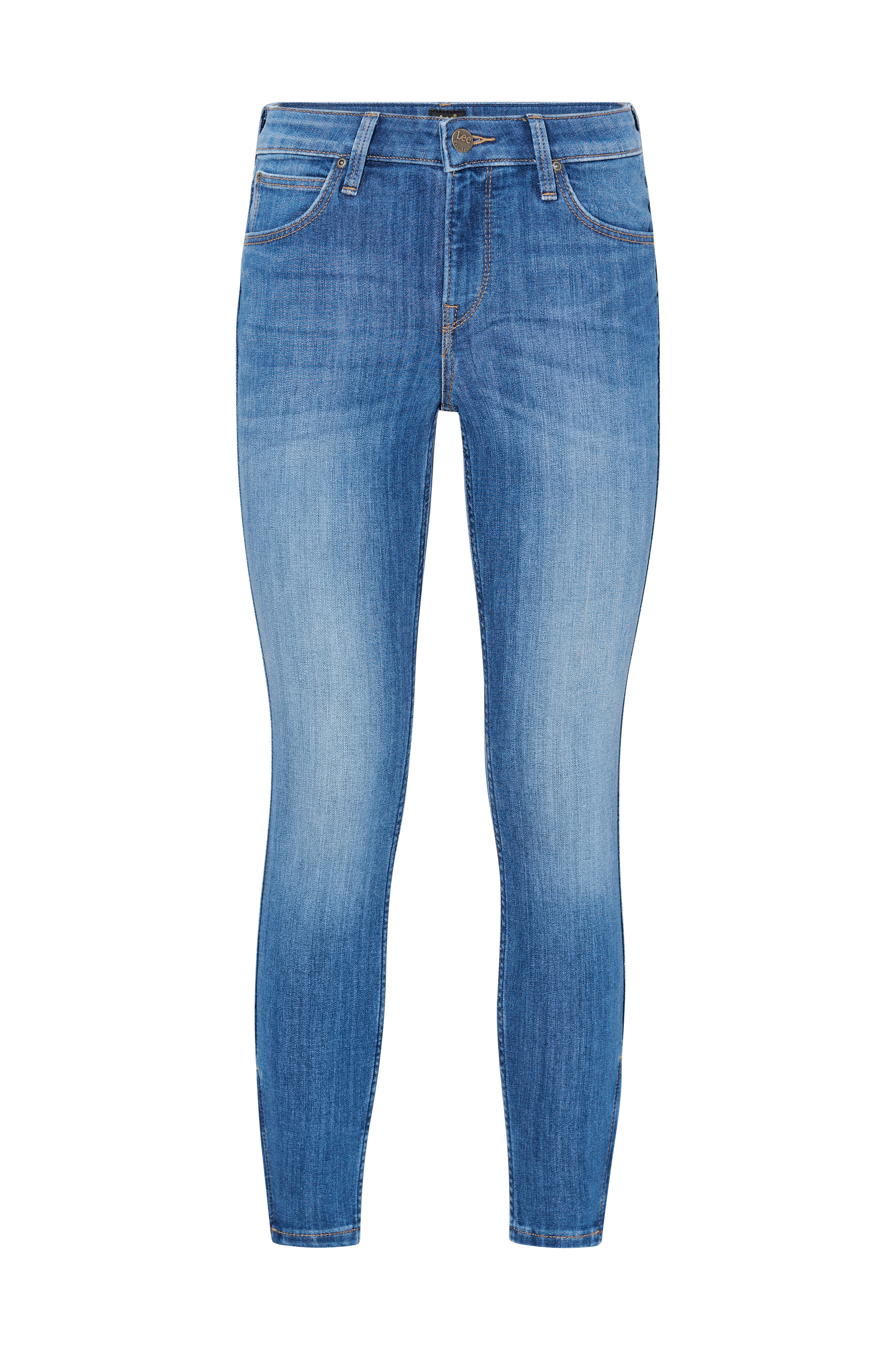 Jeans Scarlett Cropped Skinny från Lee. Smal modell med smala lår och avsmalnande benslut som har dragkedja på utsidan. Fem jeansfickor med dekorstickade sömmar.
