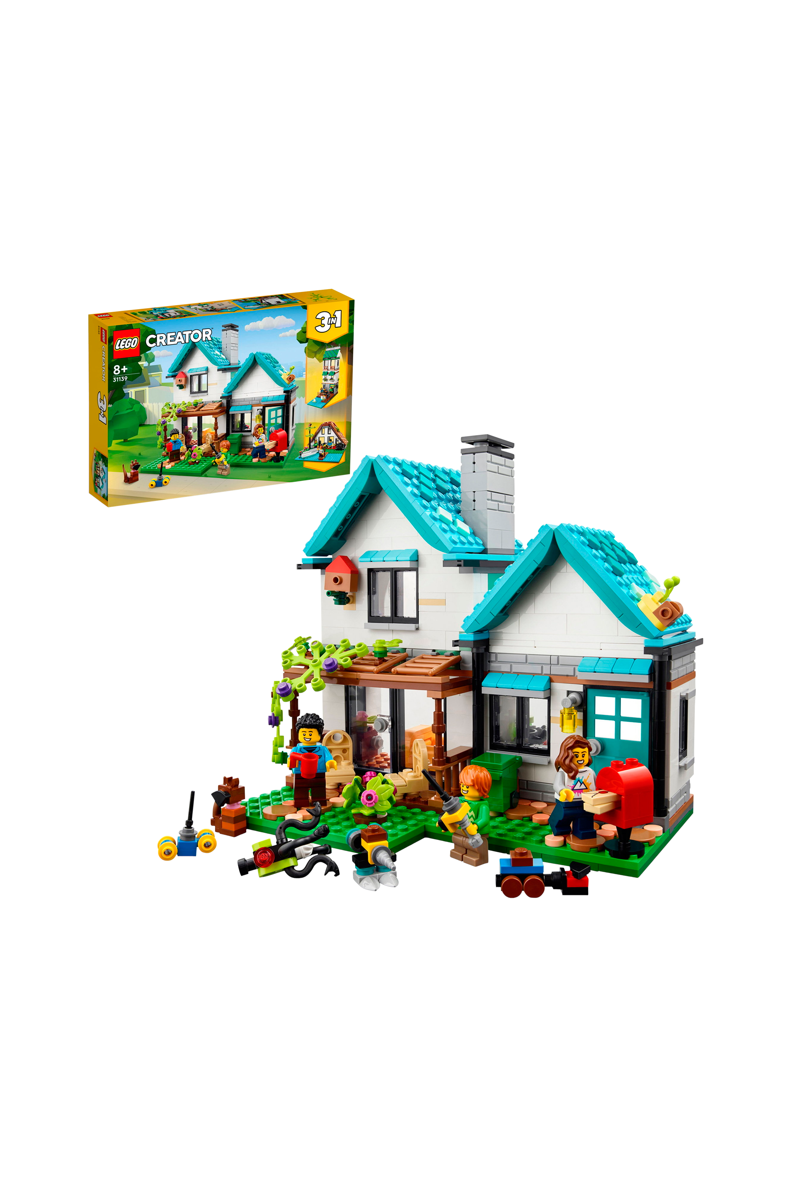 Innehåller 3 minifigurer (2 vuxna och 1 barn), som kan byta kläder och hår för att skapa olika karaktärer.