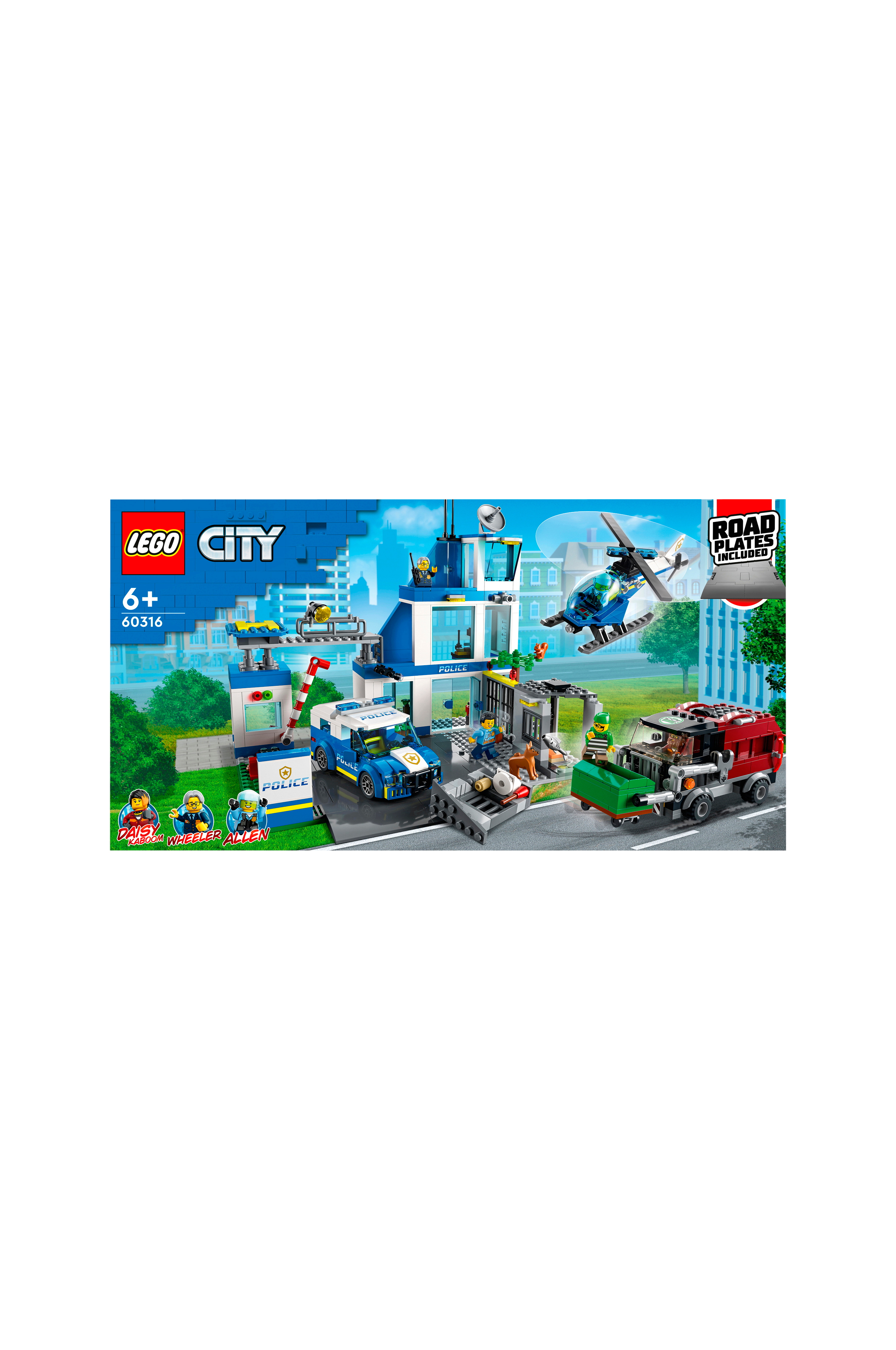Barn får även en polisbil, en helikopter och skurkarnas specialanpassade sopbil, plus en vägplatta för att sätta ihop med andra set. Det är bara att lägga till setets 5 minifigurer, däribland 3 karaktärer från tv-serien LEGO City Adventures, så kan leken börja.