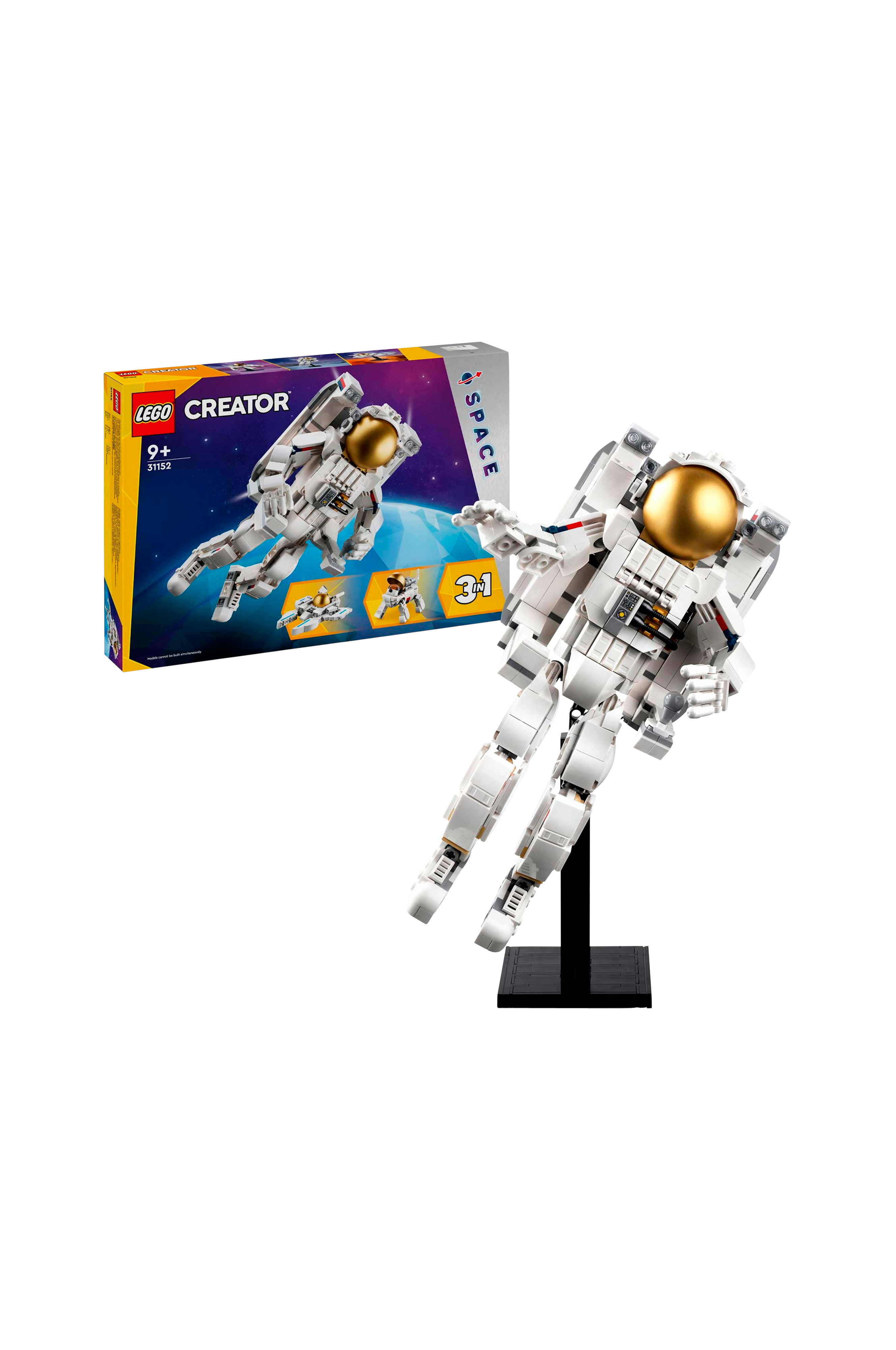 LEGO®-fans kan uppleva spännande rymdäventyr med LEGO Creator Rymdastronaut (31152). Setet innehåller en astronautfigur med avtagbar ryggsäck, rörliga delar och ett visir. Barn kan bygga tre olika modeller: en rymdastronaut, en rymdhund eller ett rymdjetplan, alla med visningsställ. LEGO Creator 3 in 1-set erbjuder en kreativ byggupplevelse med möjligheten att skapa olika modeller, vilket ger timmar av underhållning. Rekommenderad ålder: från 9 år.