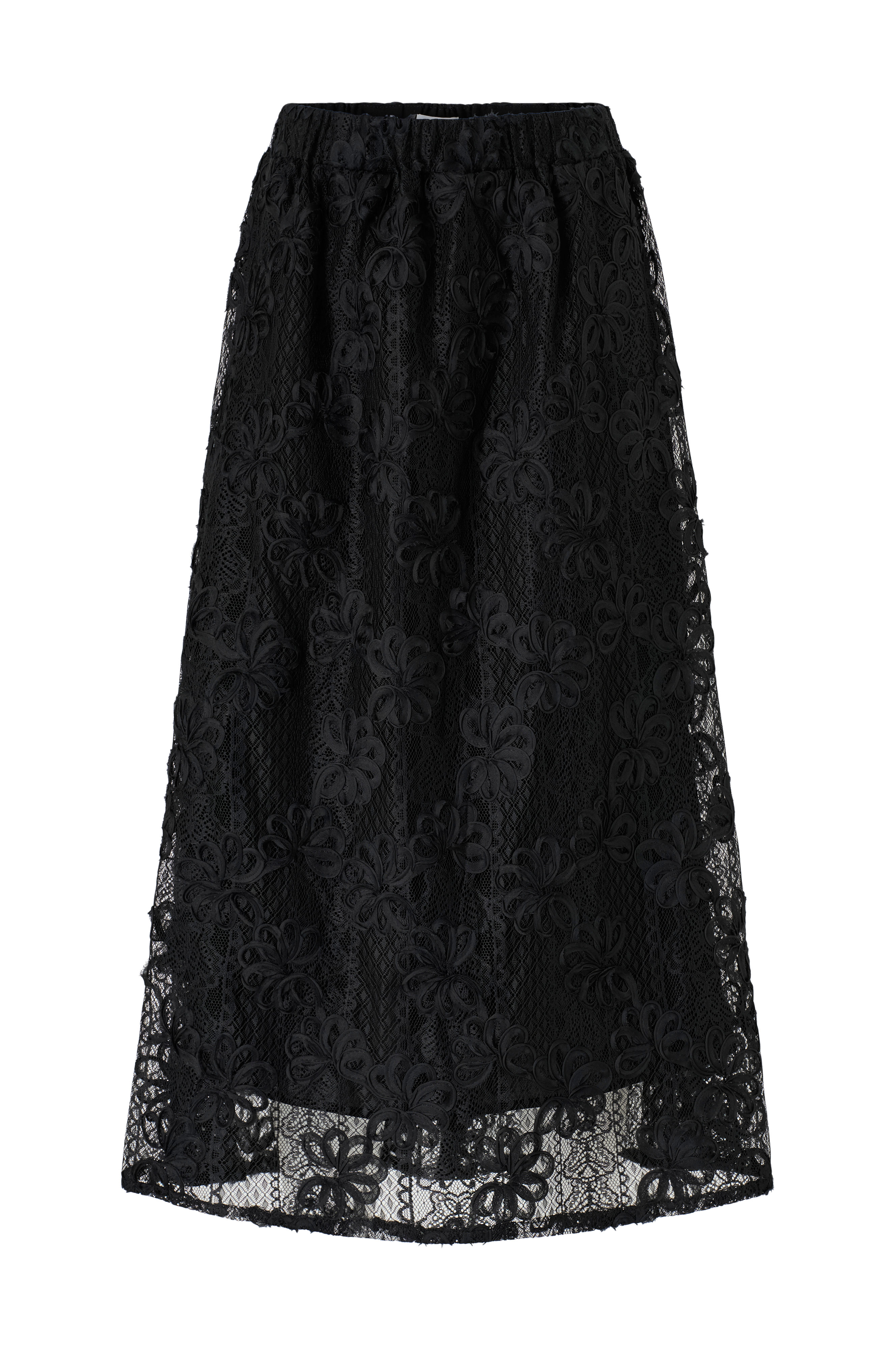 • Lång, a-linjeformad kjol i spets med applikationer runt om
