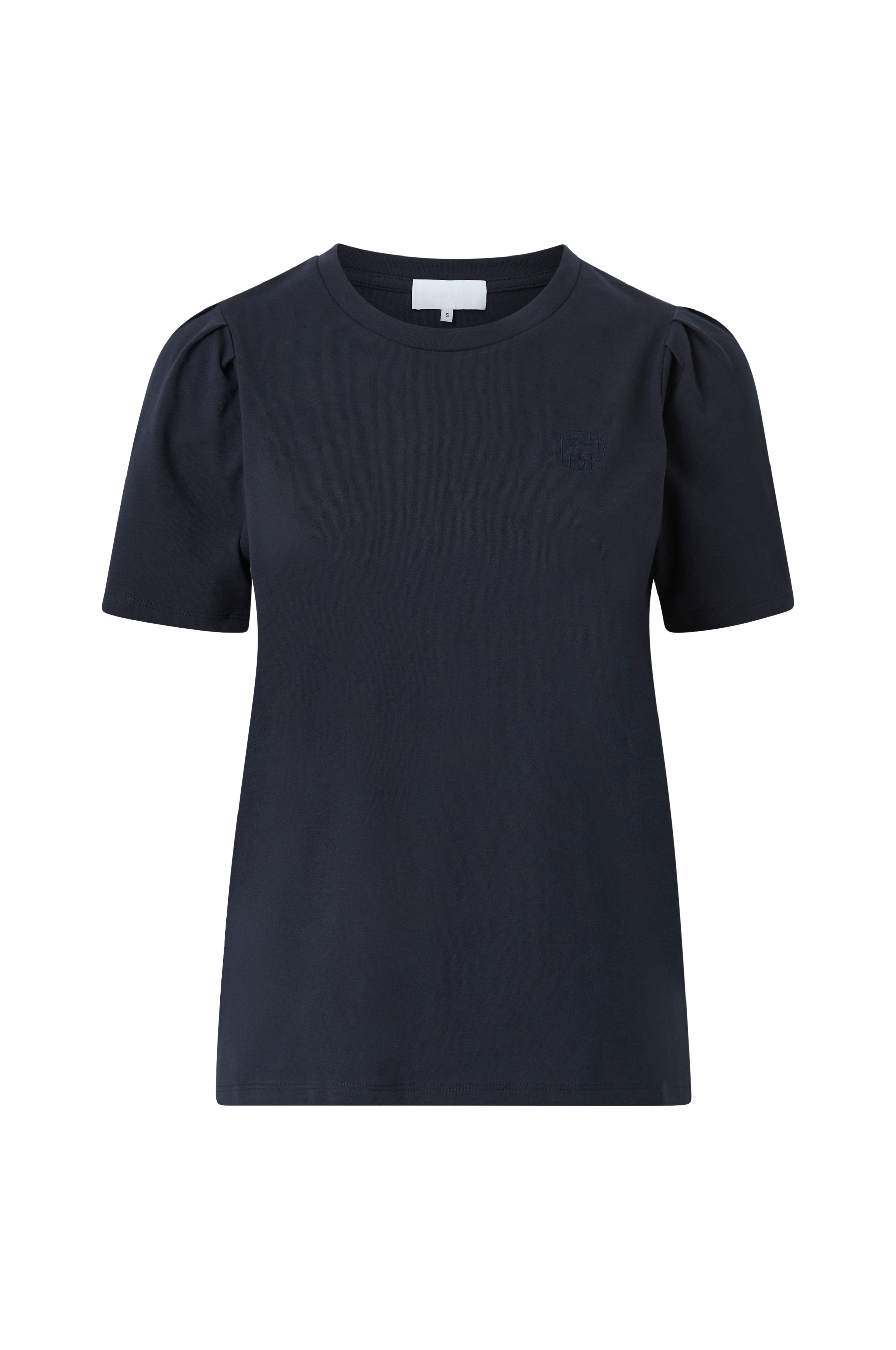 • T-shirt i bomullsmix• Rund halsringning• Korta ärmar med rynk på axlarna