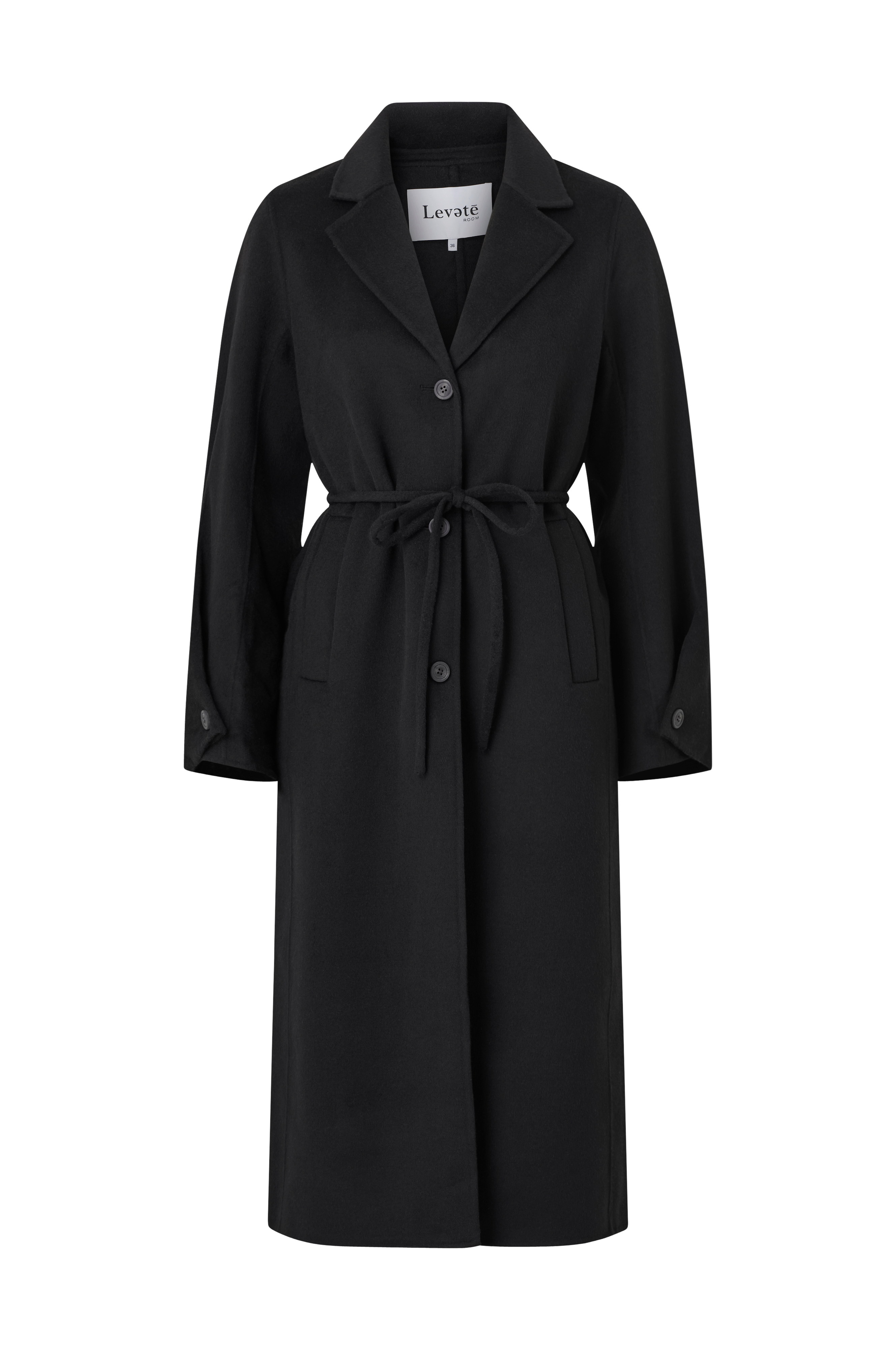• Kappa i ullblandning med krage och slag• Dekorativ knapp i ärmsluten• Knytband i midjan• Knappstängning• Sidfickor• Sprund nedtill bak• Längd: 122 cm i storlek 36