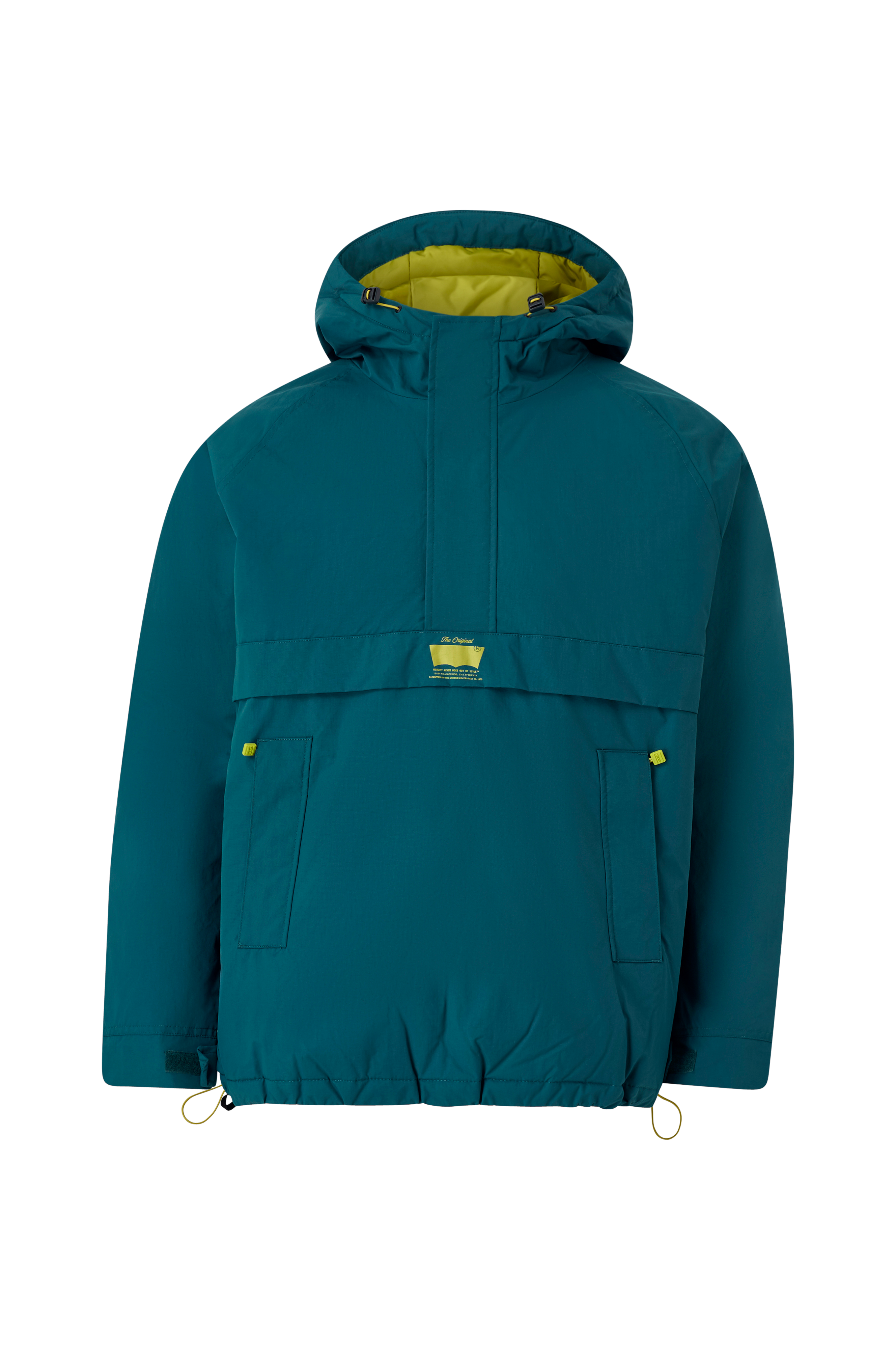 Lätt vadderad anorak med vattenavvisande yta. Fast huva med dragsko och halvlång dragkedja. Fleecefodrad magficka med två dragkedjeöppningar. Justerbar vidd i ärmsluten. Resår och dragsko med stoppers i nederkanten. Längd ca 78 cm i stl M.
