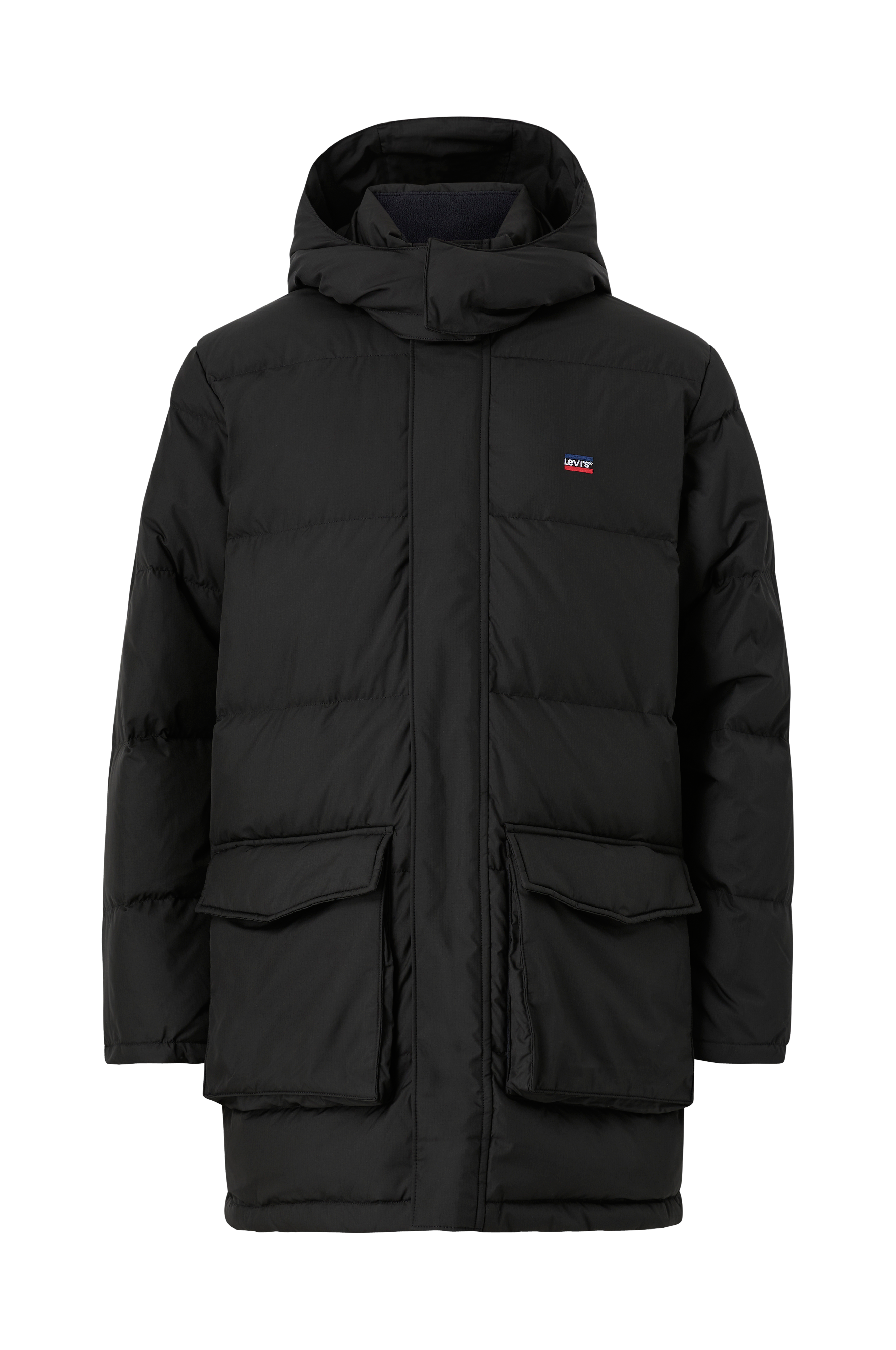 • Quiltad dunjacka • Vattenavvisande yta • Avtagbar huva • Hög krage med fleecefoder • Tvåvägsdragkedja • Vindslå med tryckknappar • Två fickor med tryckknapp • En innerficka med dragkedja • Ribbstickade muddar i ärmsluten • Dragsko nedtill • Längd: 87 cm i storlek M