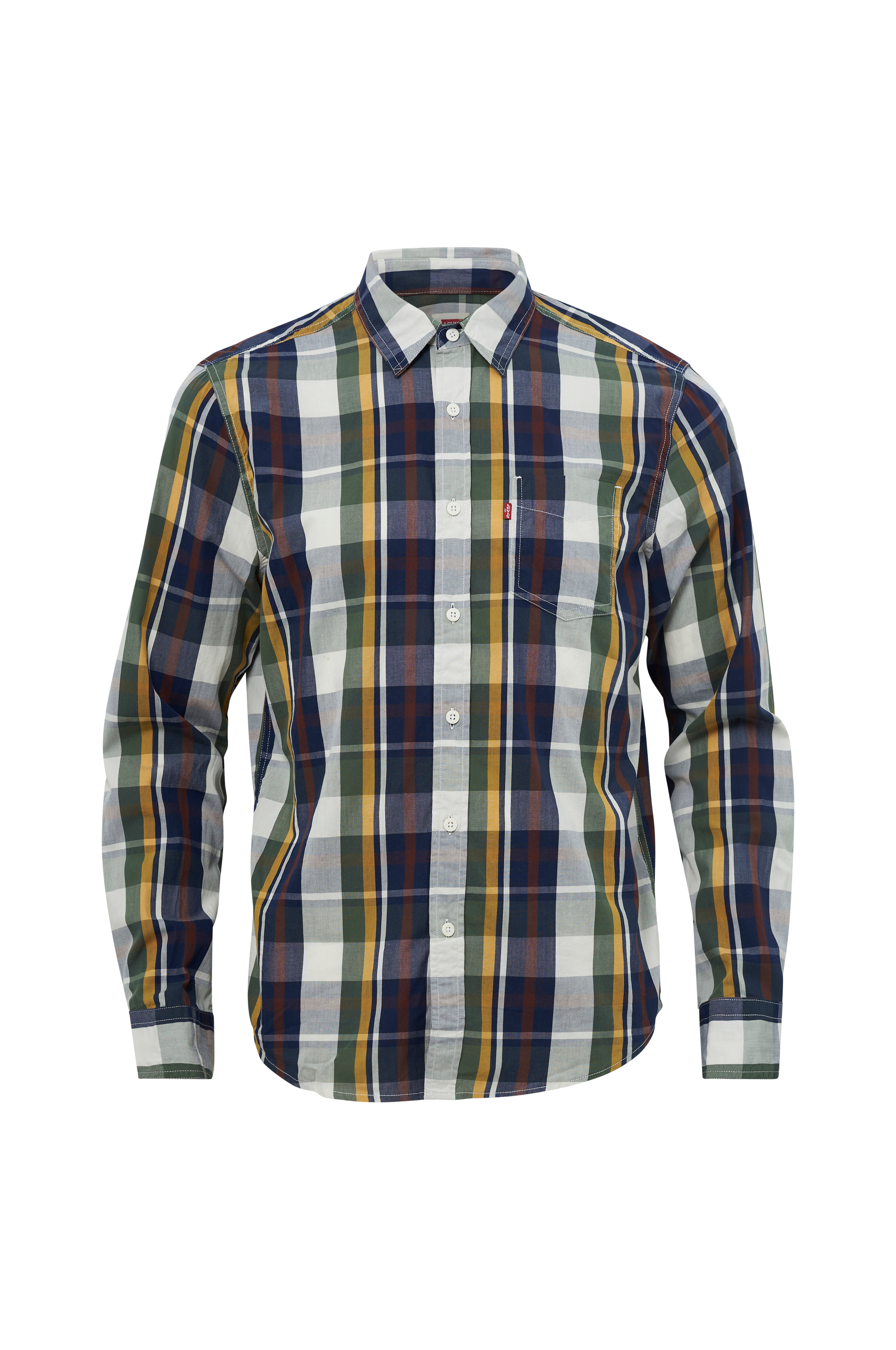 Skjorta i bomull med en påsydd bröstficka. Rak modell med rundad nederkant. Manschett med en knapp.