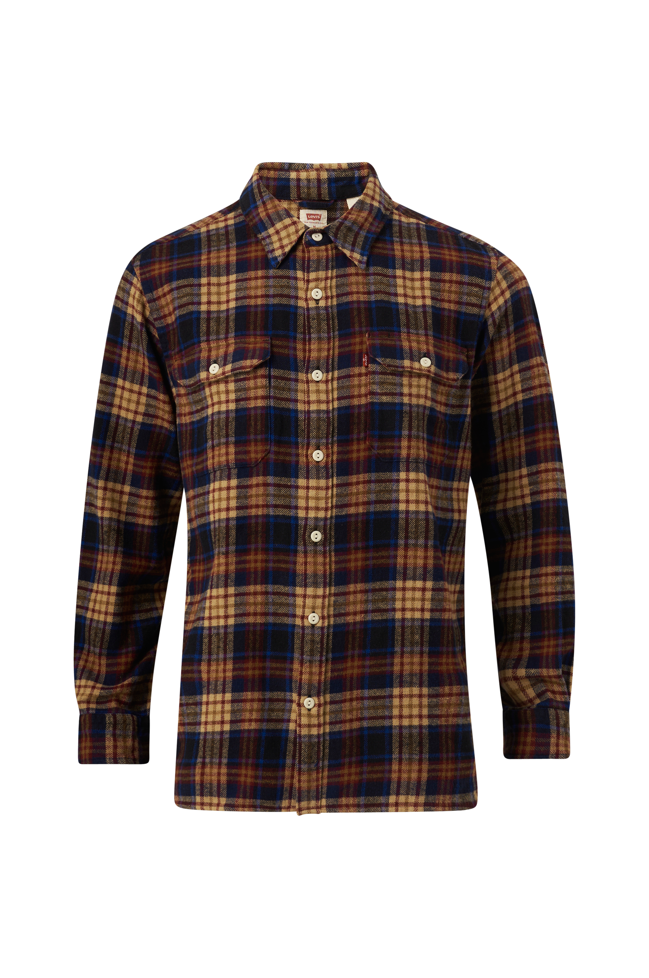 Min man brukar ha XL i skjortor även Levis men den här fick jag byta till L , annars en snygg skjorta, köpte Sarina LAV färgen och den va jätte snygg gick i ljusblått med ljust bruna rut…