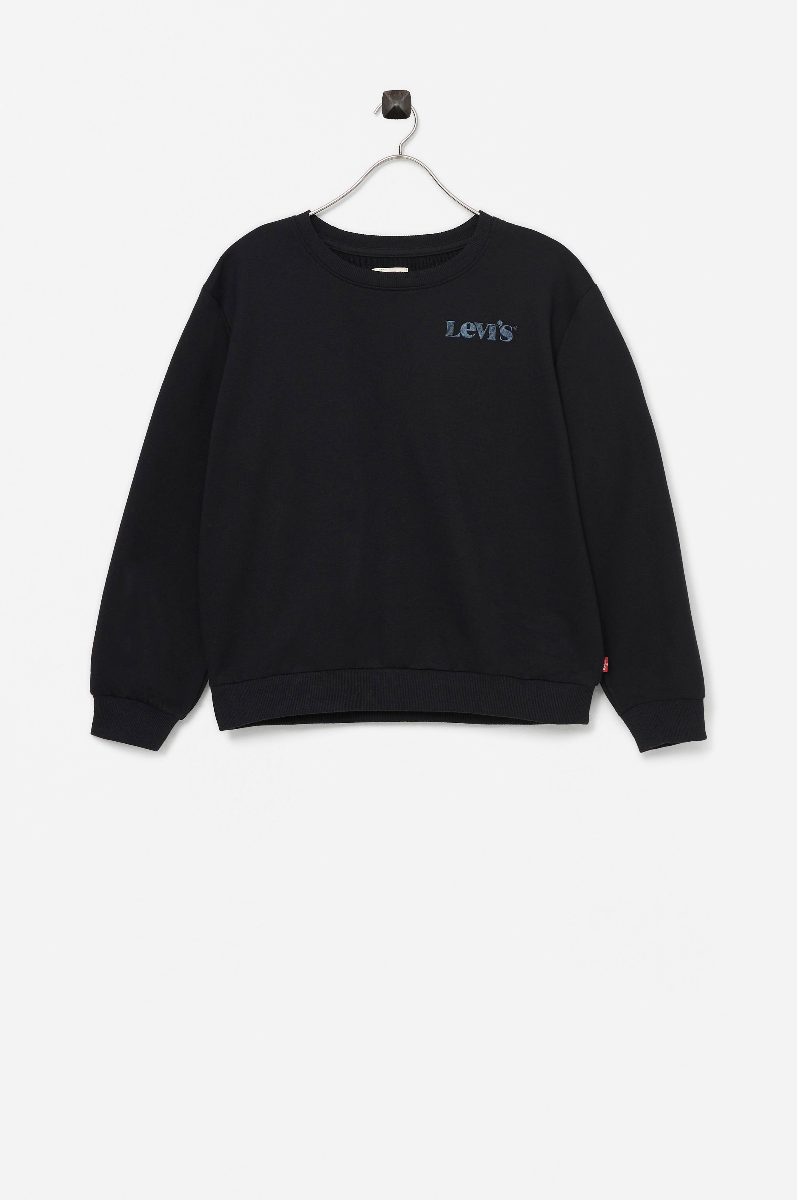 Sweatshirt i något tunnare kvalitet av bomullsmix med broderad logo ton i ton på bröstet. Ledig modell med nedhasade axlar och ribbmudd i ärmslut, nederkant och hals.
