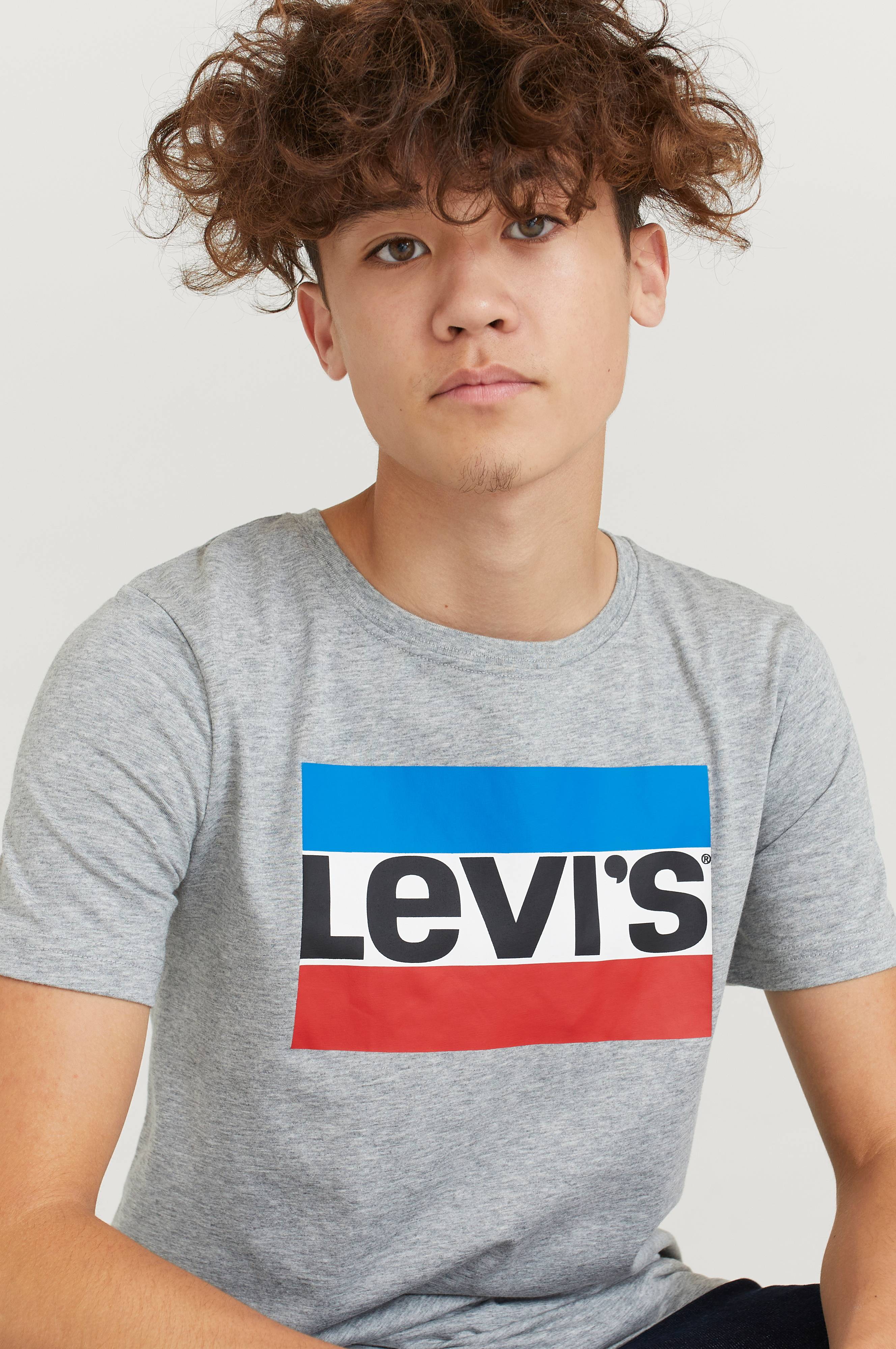 T-shirt i bomullstrikå med blockfärgat logotryck fram. Korta ärmar och rund, ribbad hals.