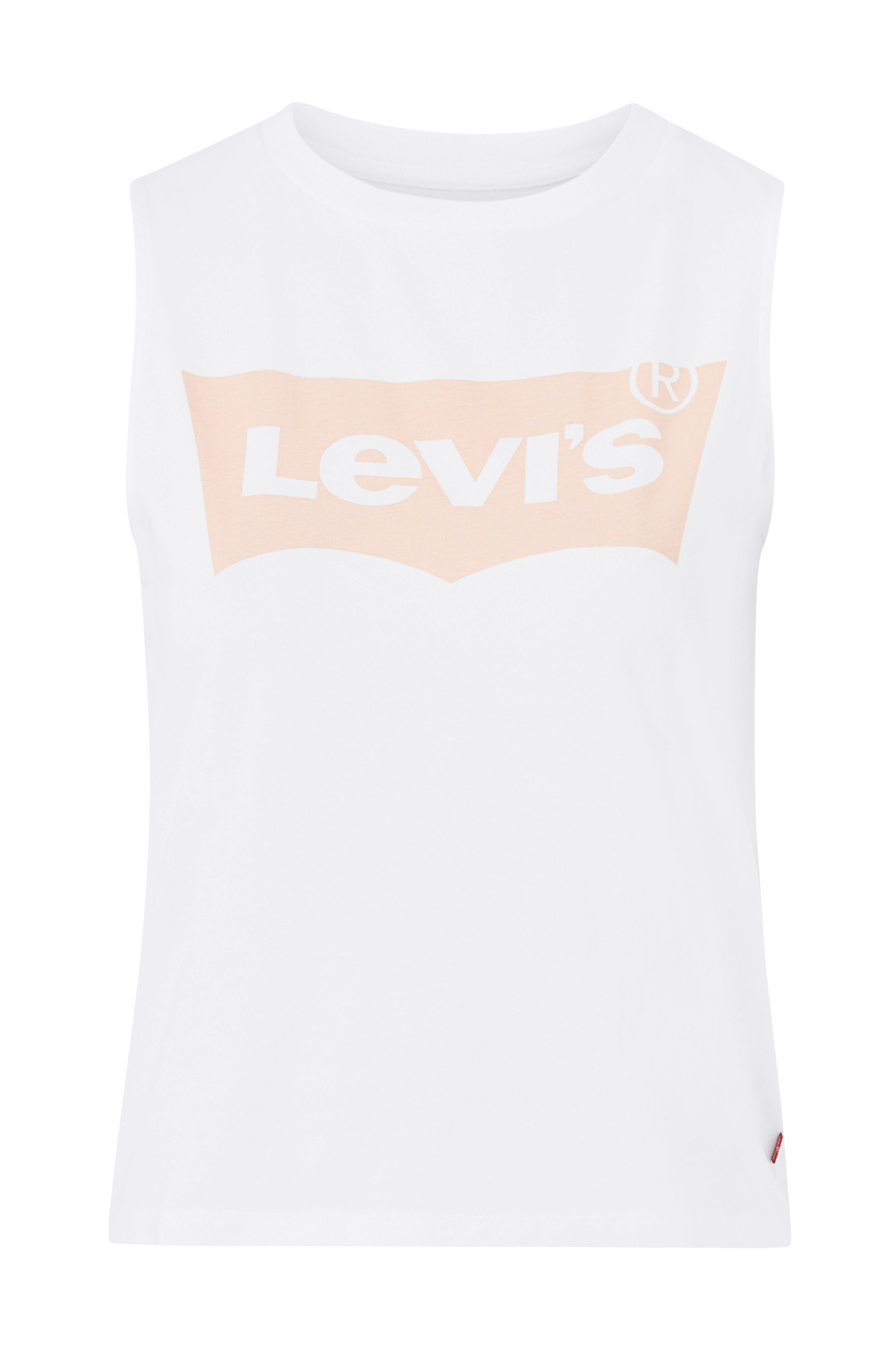 Ärmlös topp i bomullstrikå med logotryck fram. Rund, ribbad hals.