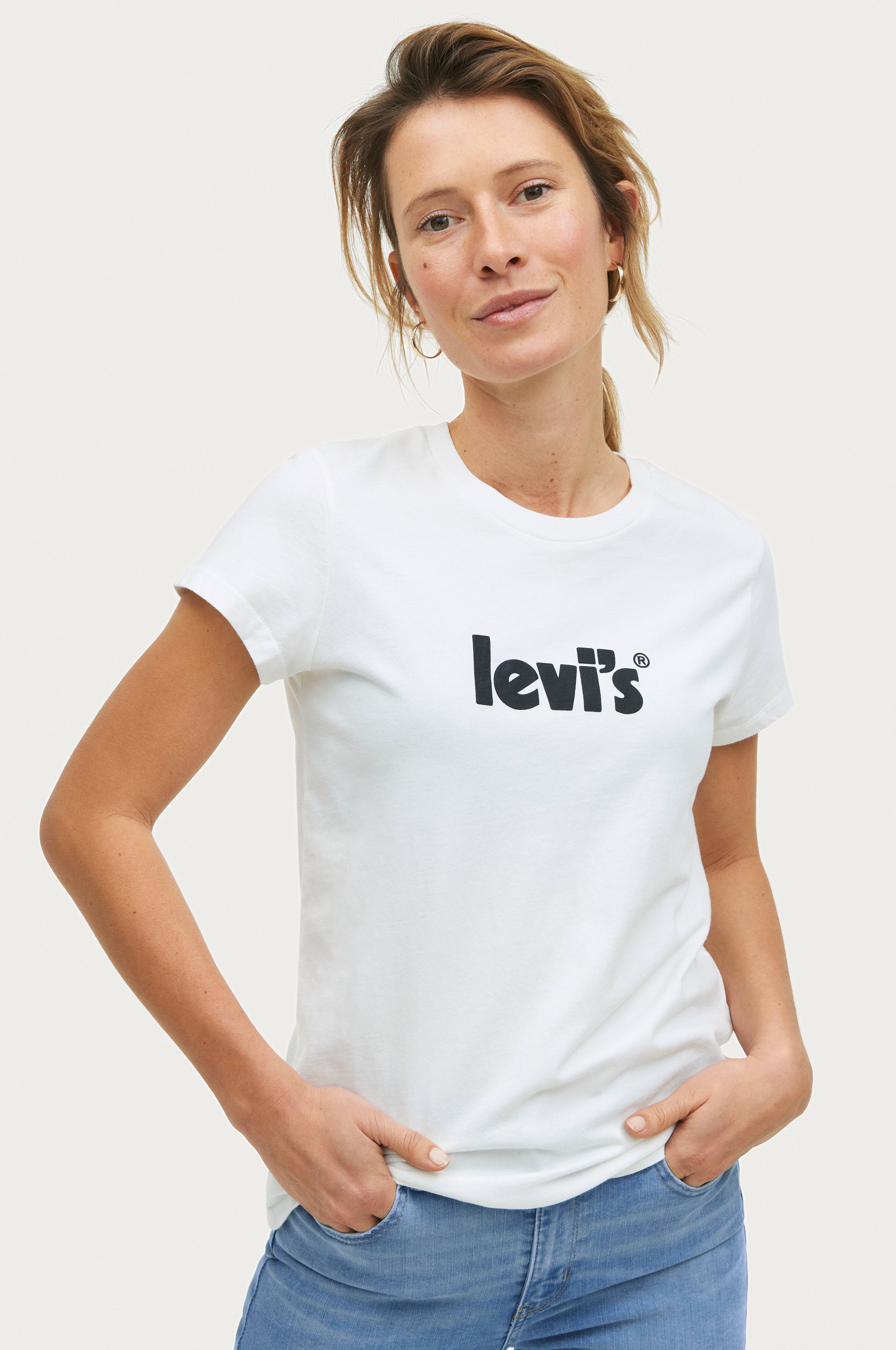Topp The Perfect Tee från Levi's med tryckt logo på bröstet. Kort ärm och vid hals med ribbad kant. Längd ca 60 cm i stl M.