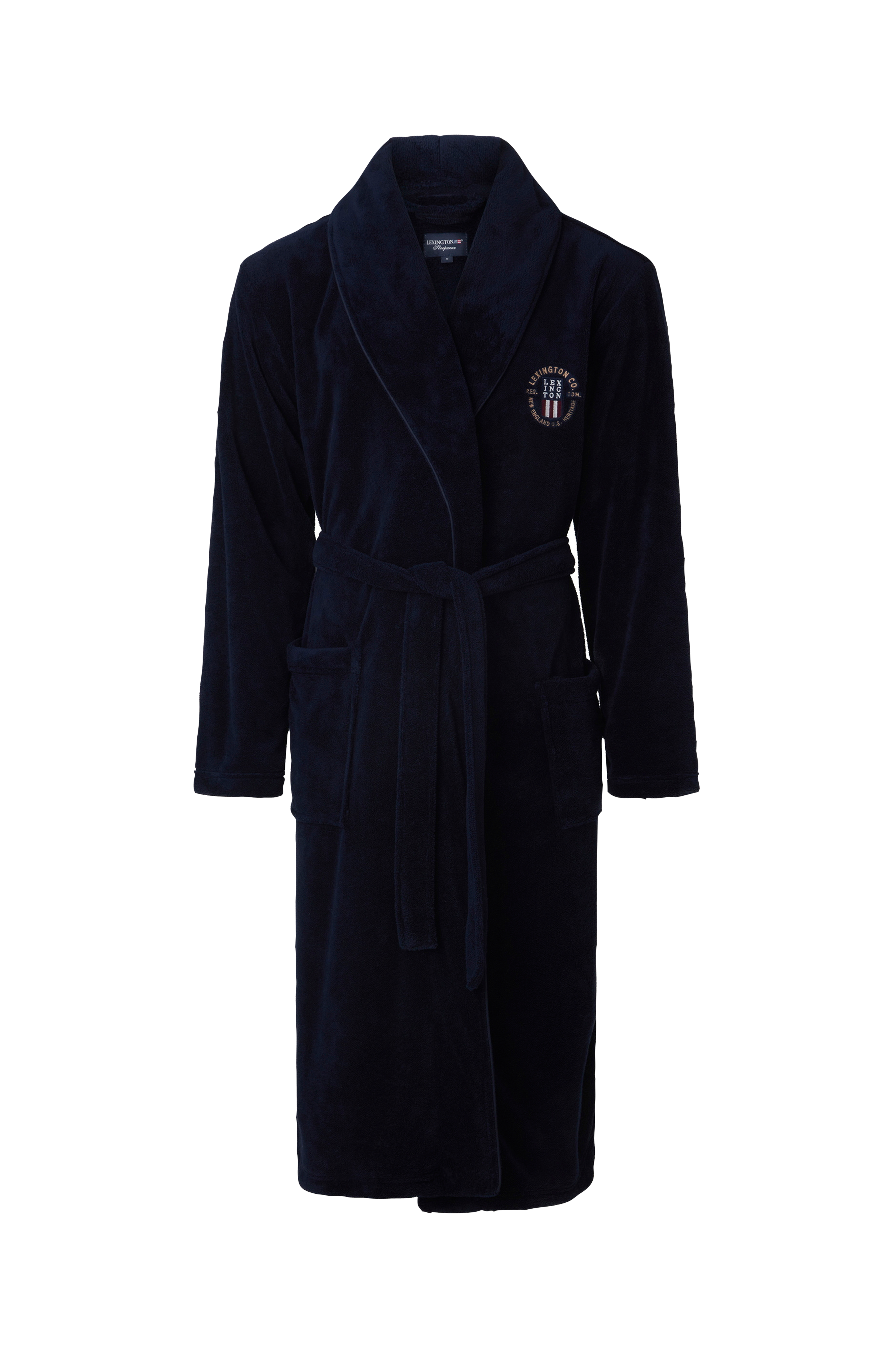 Raffinerade detaljer förhöjer detta vardagsplagg, inklusive subtila passpoaler runt kragkanten och Lexington-broderiet på bröstet som ger en sofistikerad varumärkesprägel. Unisexdesignen gör den till ett perfekt val för alla som söker bekväma loungekläder utan att kompromissa med stilen. Oavsett om du njuter av ett stillsamt morgonkaffe eller varvar ner efter en lång dag ger den här fleecemorgonrocken den perfekta kombinationen av komfort och diskret lyx som definierar Lexingtons livsstil.