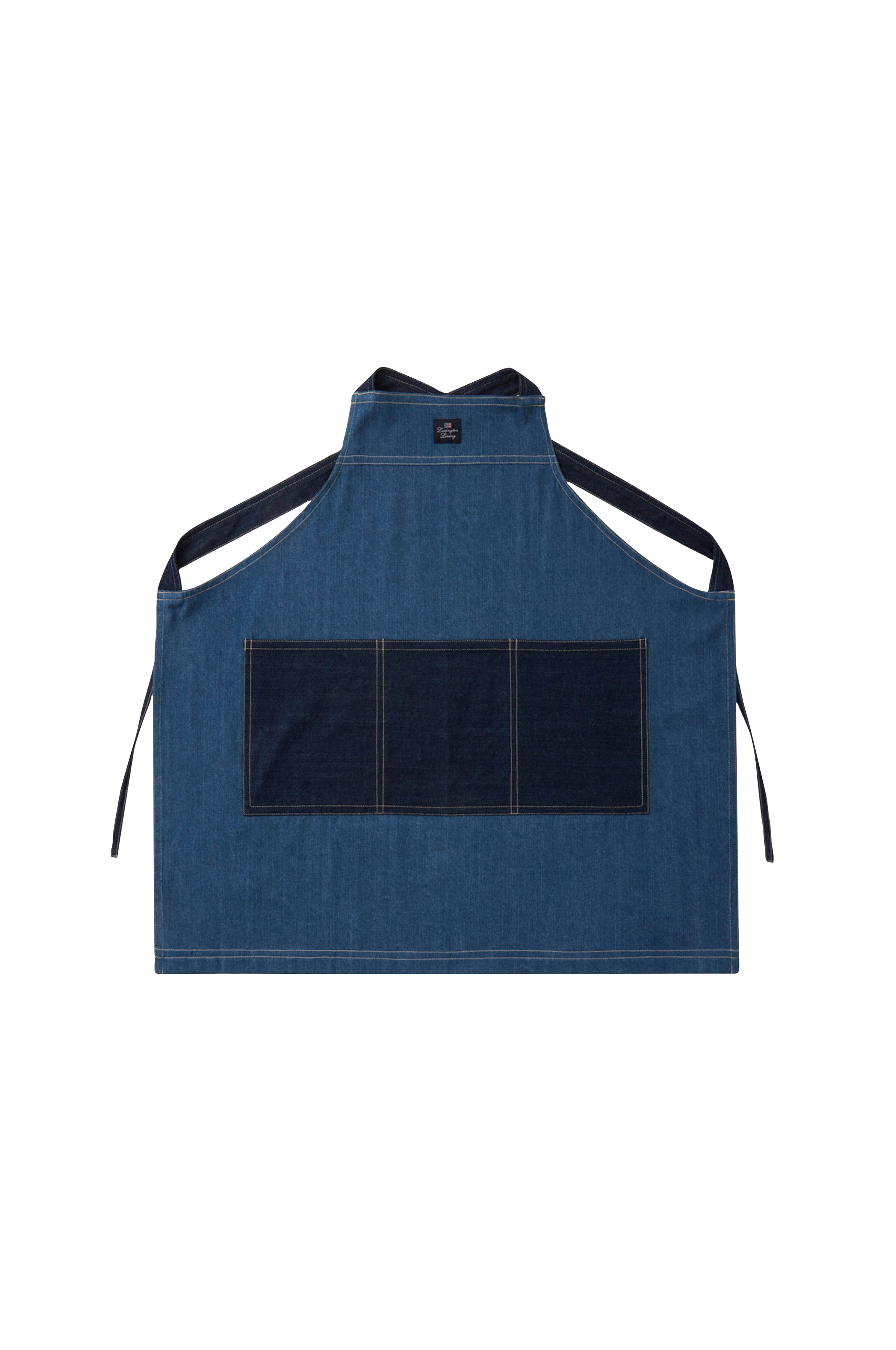Skydda dina kläder med stil i vårt patchade jeansförkläde, oavsett om du befinner dig i köket eller trädgårdslandet. Tack vare de korsade remmarna i ryggen och justerbara midjebandet kan passformen alltid anpassas efter person. Den stora, tredelade fickan framtill är perfekt för att alltid ha dina redskap nära till hands. Denimtyget i 100% bomull är ett hållbart val som blir bättre för varje tvätt.