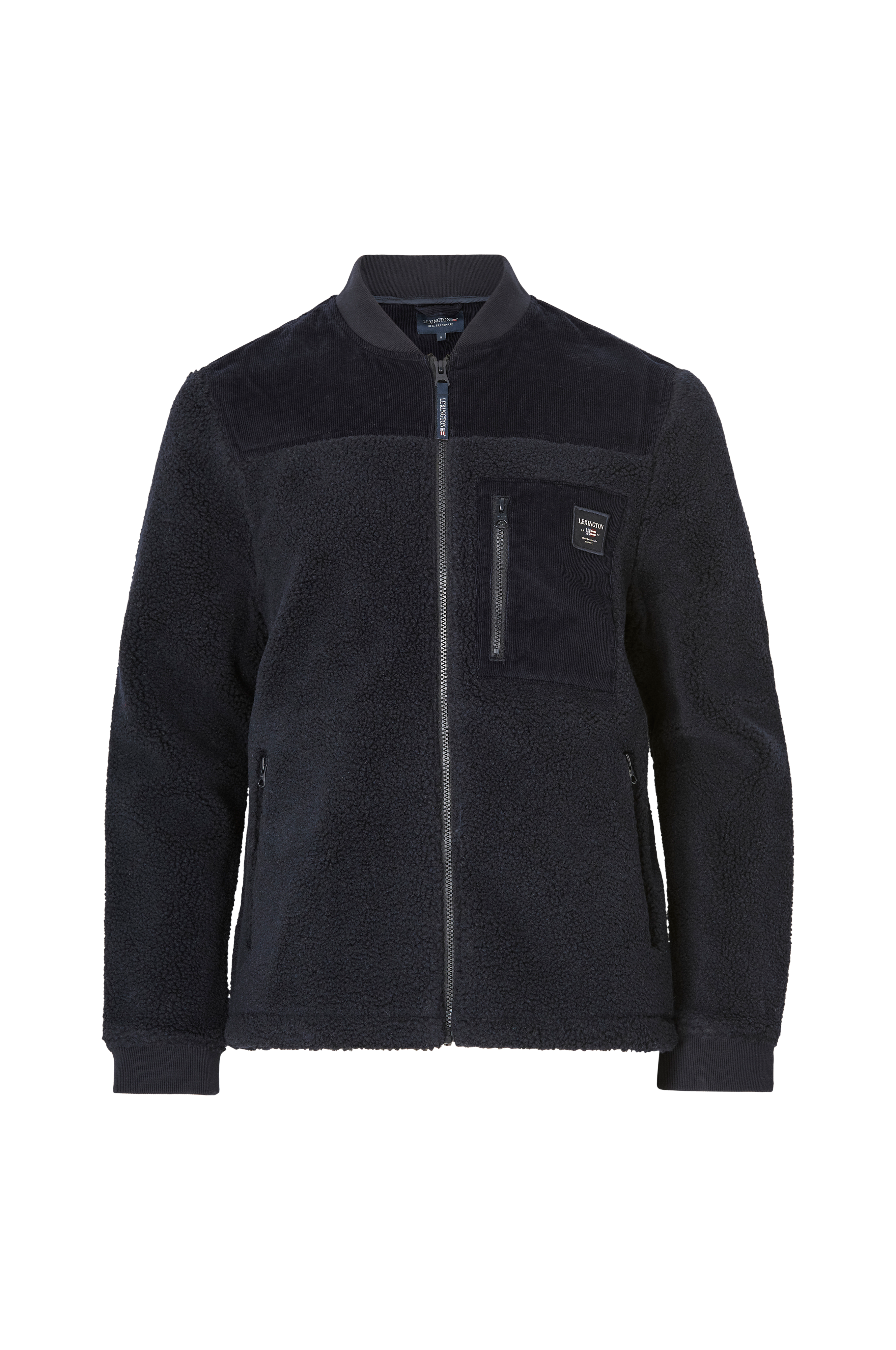 • Jacka i teddyfleece• Infällning i manchester upptill fram och upptill bak• Ribbstickad krage• Hellång dragkedja• Två dragkedjefickor nedtill• En bröstficka i manchester med dragkedja• Ribbmuddar i ärmsluten• Längd: 72 cm i storlek M