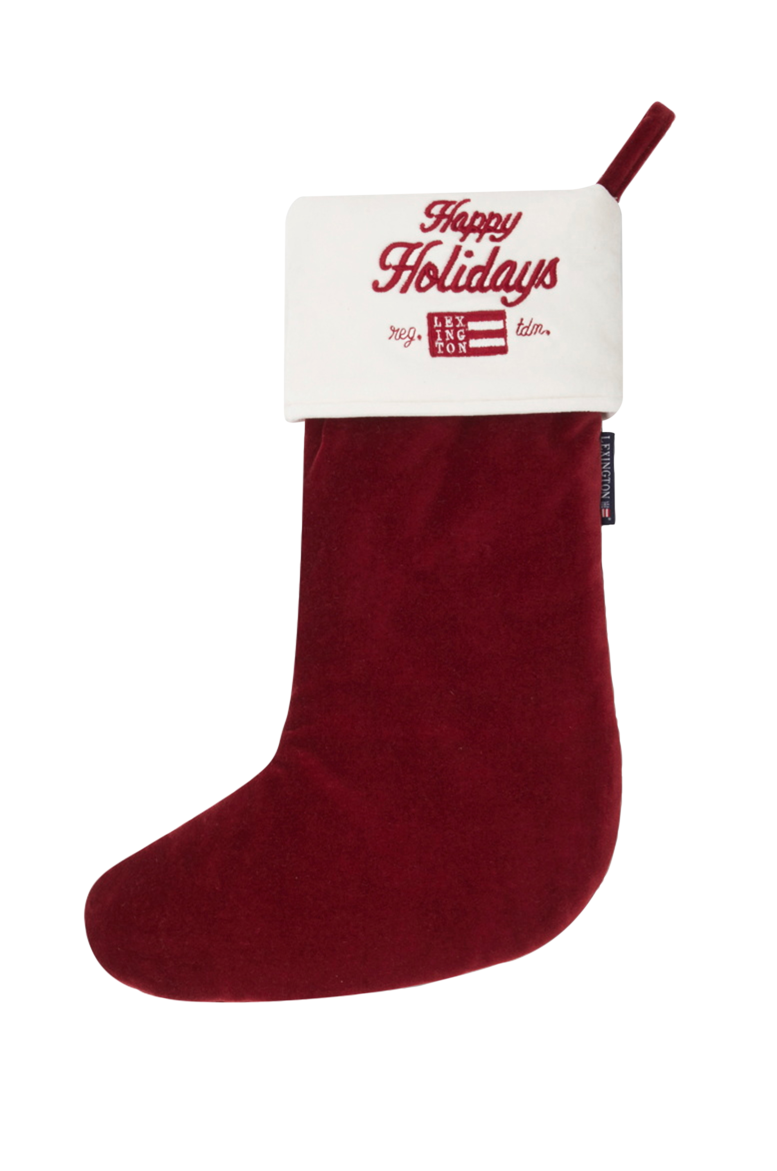 “The stockings were hung by the chimney with care, in hopes that St. Nicholas soon would be there.” Så lyder det klassiska engelska rimmet om julstrumpan. Denna populära jultradition stöps i klassisk Lexington-stil med vår julstrumpa i mjuk sammet av bomull. I en djup röda eller beige nyans med budskapet “Happy Holidays” broderi pryder denna ultramjuka strumpa i 100 % bomull. Den praktiska lilla öglan gör den lätt att hänga upp och att den tillverkats i en certifierad Green Factory är en garant för hållbarhet och miljövänlighet. Vad kommer tomten stoppa i din strumpa?
