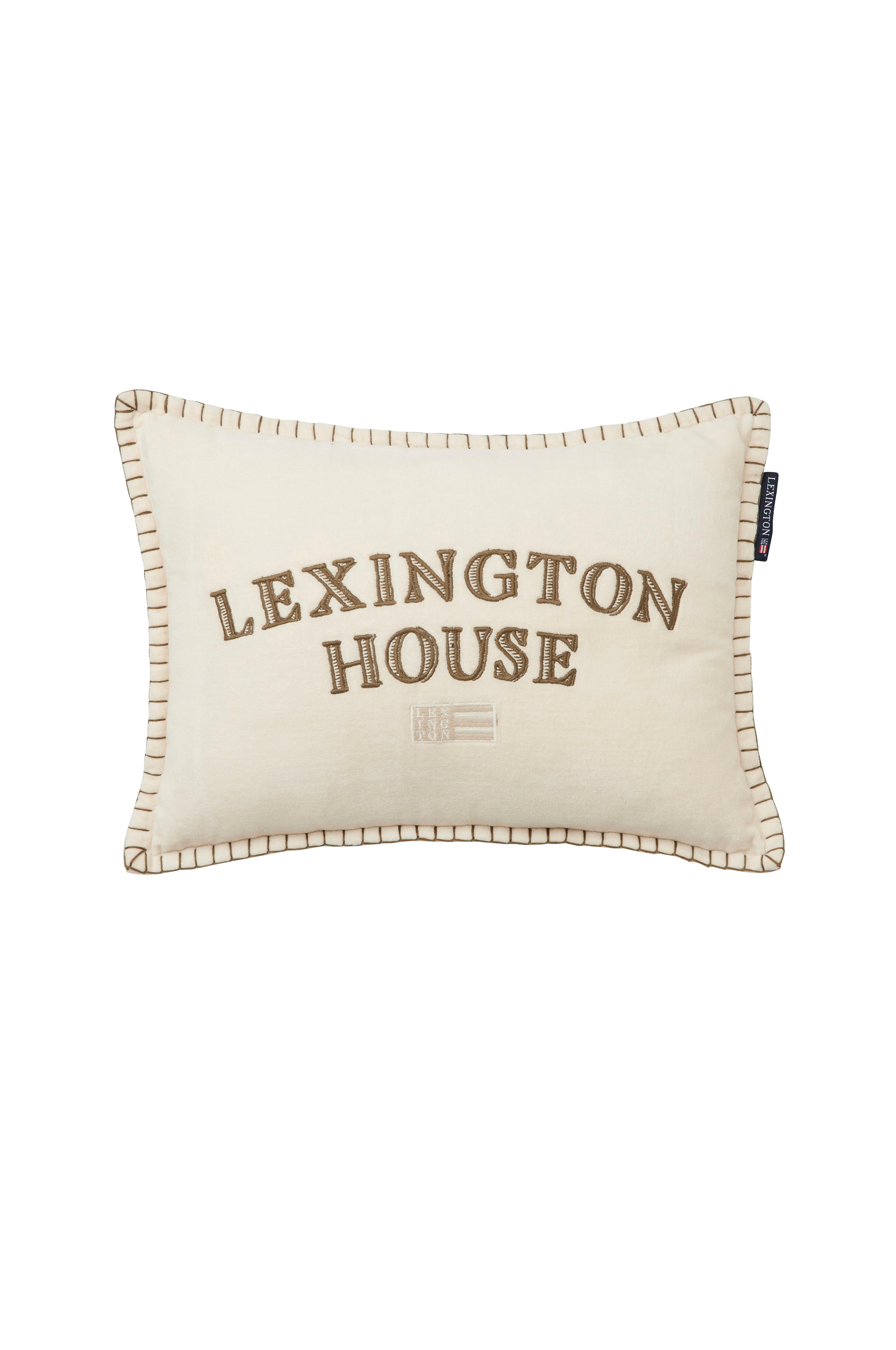 Ge ditt hem en touch av raffinerad komfort med vår Lexington House-kudde i bomullssammet. Denna utsökta accentdetalj har ett vackert "Lexington House"-broderi på framsidan, kompletterat med vårt signaturflagga-logo i det övre hörnet. Den ljusbeige och olivgröna färgpaletten skapar en mångsidig estetik som enkelt passar både traditionell och modern inredning. Denna kudde är tillverkad av 100 % bomullssammet med matchande kantstickning runt om och erbjuder både visuell attraktionskraft och taktil njutning. Den dolda dragkedjan ger en elegant finish, medan fyllningen av återvunnen polyester ger mjukt stöd.