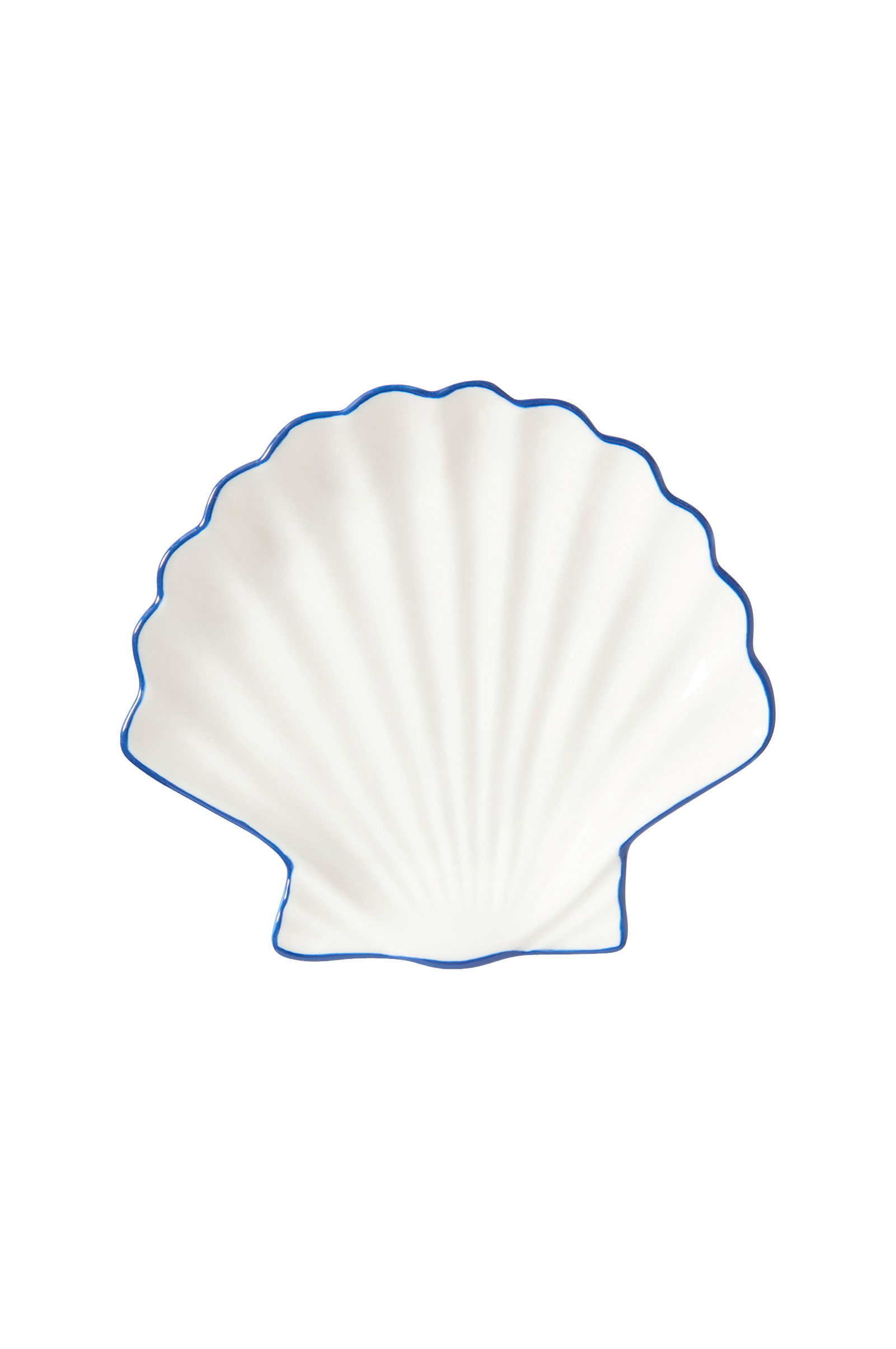 För in kustcharm i vardagens middagar och utställningar med detta lilla shell-formade stengodsfat. Den släta, glansiga glasyren och den handmålade blå kanten gör det perfekt för servering av kryddor, oliver eller snacks, och det fungerar även utmärkt som förvaring för prydnadssaker eller smycken. Det robusta, spåntåliga stengodset och den tidlösa designen gör att du kan matcha dina Lexington-serviser utan problem. Tål maskindisk och mikrovågsugn. Tillverkad av stengods.
