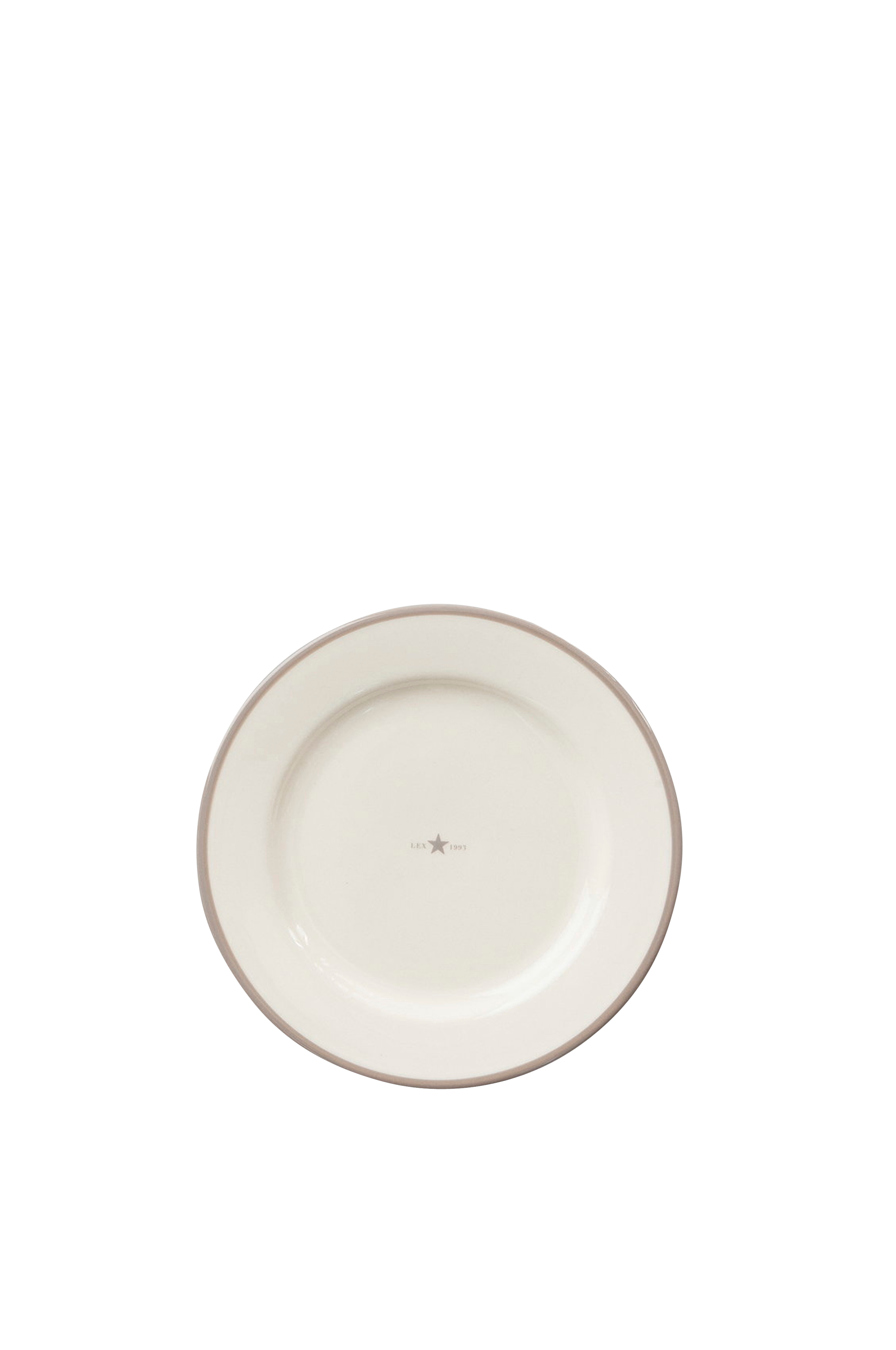 Handmålad desserttallrik i keramiskt lergods med logotyp. Varje tallrik har en unik prägel. Mått: 22 cm diameter.