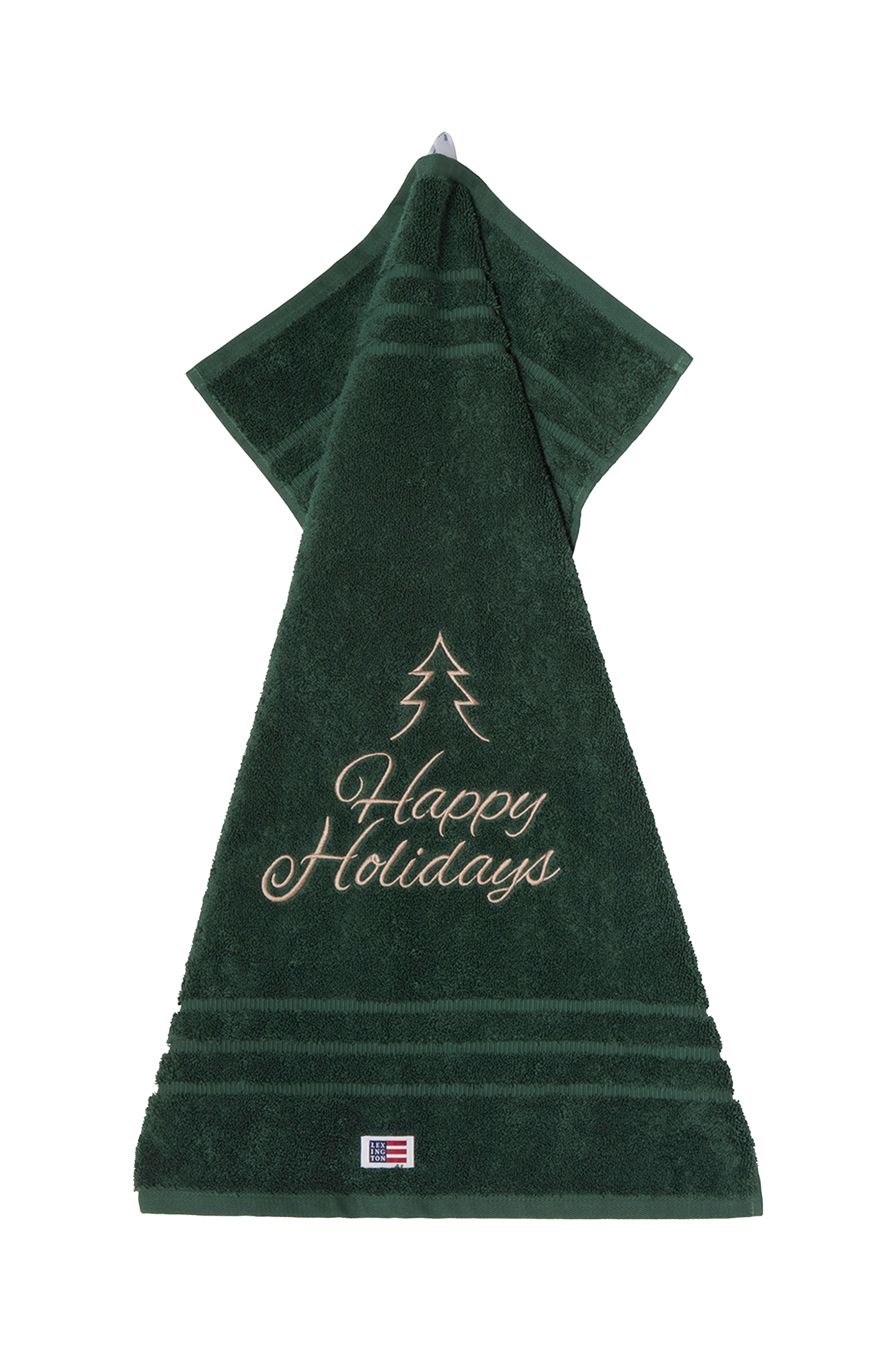 Ge ditt hem en festlig charm med vår Original Towel Juniper Happy Holidays , med det eleganta broderiet "Happy Holidays " i mjuk beige mot en rik juniper grön bakgrund. Denna lyxiga handduk är tillverkad av 100% bomullsfrotté på 600 g/m² och ger exceptionell mjukhet och överlägsen absorptionsförmåga för daglig användning. Den sofistikerade designen inkluderar klassiska twillavslutningar och tre ränder med jacquardstruktur som speglar vår älskade Original Towels-kollektion, medan semesterbroderiet ger en speciell säsongsbetonad touch. Handduken är perfekt för gästbadrum under julhelgen eller som en omtänksam present, och den passar perfekt ihop med vår matchande enfärgade Original Towel Juniper för en sammanhängande, elegant look som hyllar holidays i typisk Lexington-stil.
