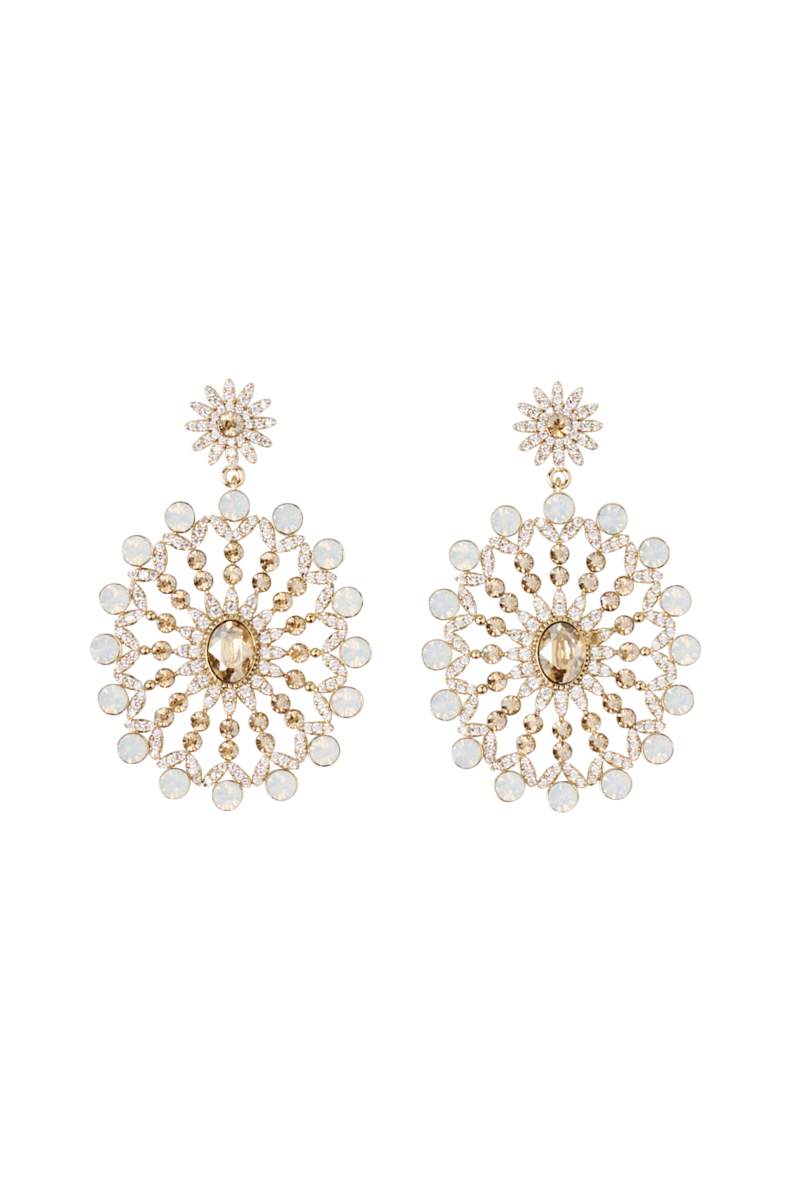Örhängen i guldpläterad mässing med gnistrande Swarowski-kristaller. Längd 5,5 cm. Bredd 3,5 cm.