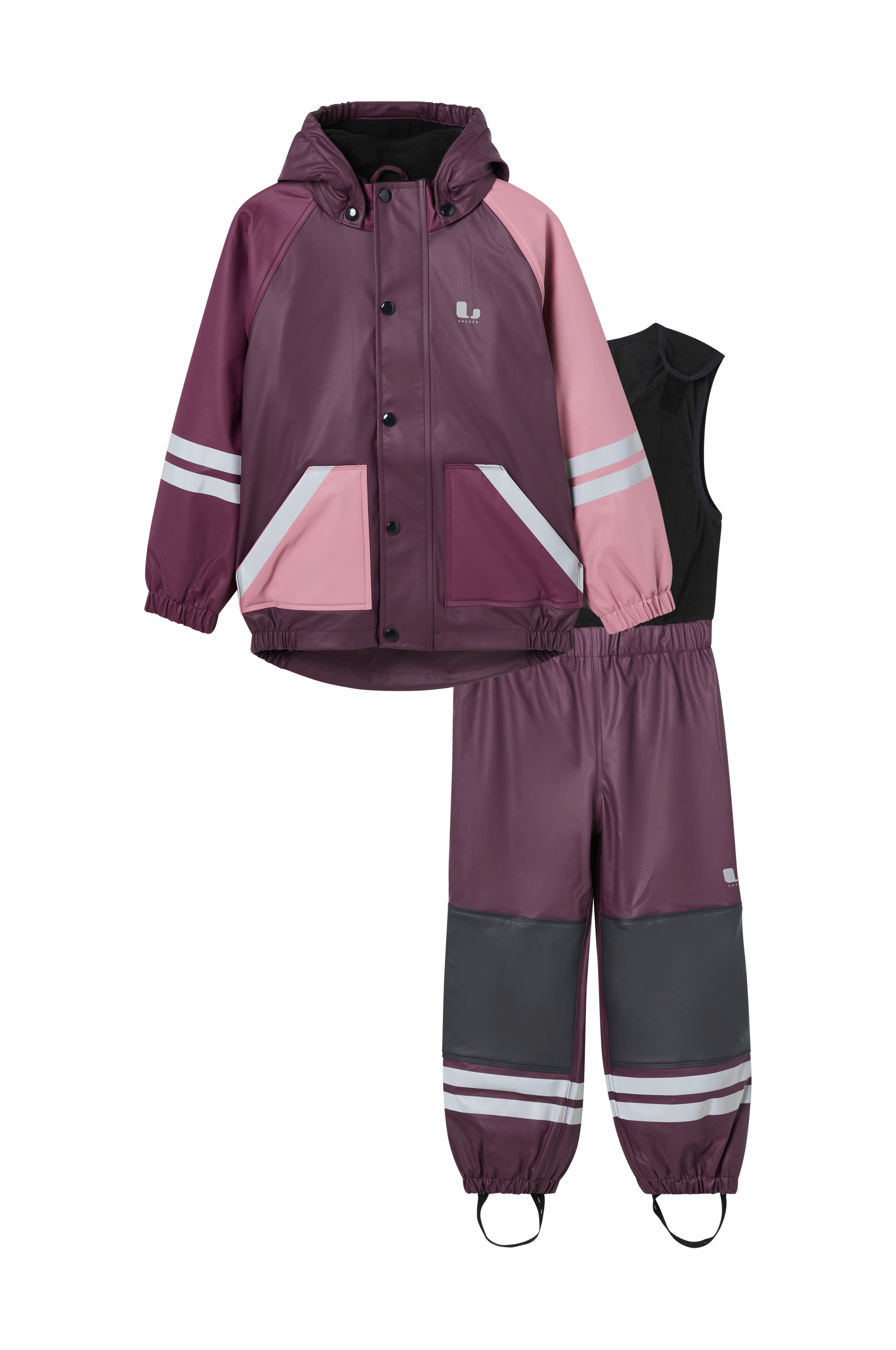 Fagerhult regnset med fleecefoder är perfekt för regniga och slaskiga dagar. Setet är tillverkat i ett vattentätt PU-material, har svetsade sömmar och reflexdetaljer runt om. Vattenpelare 8000 mm. Jackan har en avtagbar huva och två fickor och dragkedja. Vindslå med tryckknappar. Resår i ärmsluten och nedtill i sidorna. Byxan har en fleeceväst som är justerbar vid axlarna med kardborreband. Dubbla lager PU på knäna för extra slitstyrka. Resår i midjan och bensluten. Avtagbara fothällor.