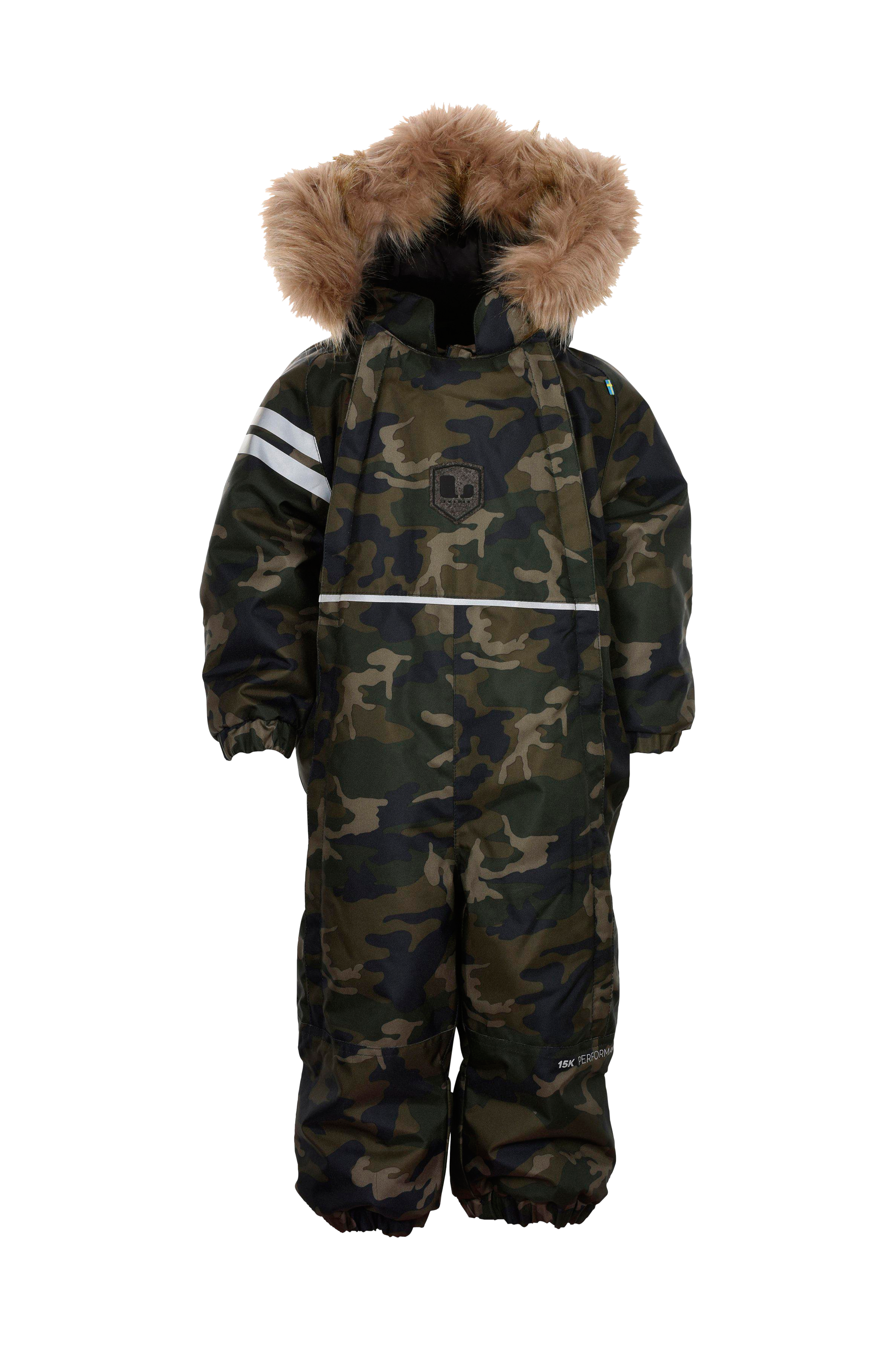Vinteroverall Camo från Lindberg är en varmt vadderad, vattentät overall som är fodrad i extra mjuk fleece. Slätt, vävt foder i ärmarna och bensluten. Vattenpelare 15000 mm och andasförmåga 6000 g/m2/24h. Alla sömmar är tejpade.