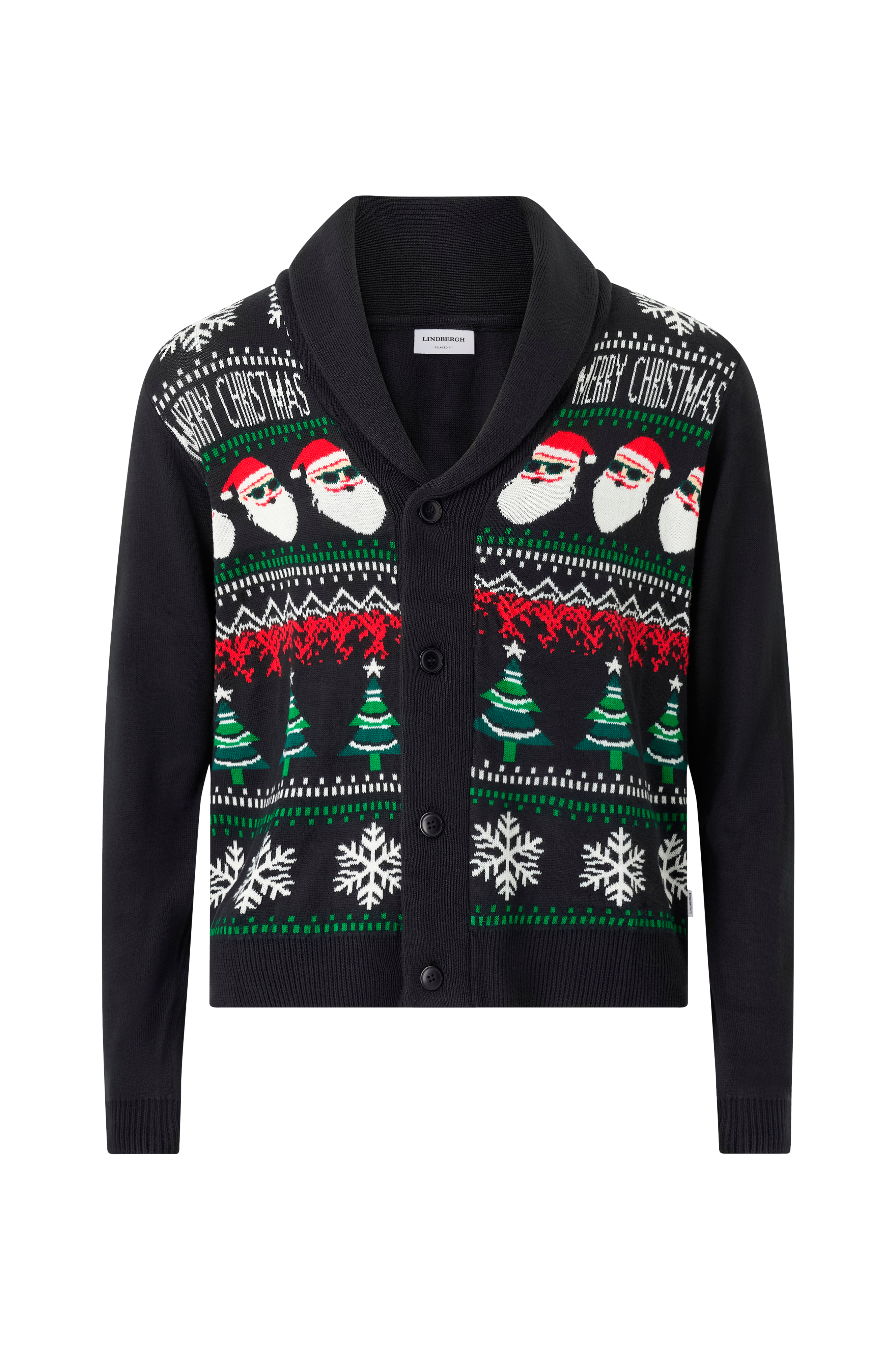 • Långärmad, finstickad cardigan med julmotiv fram• V-ringad hals med krage• Knappar fram• Ribbstickning i ärmsluten och i nederkanten