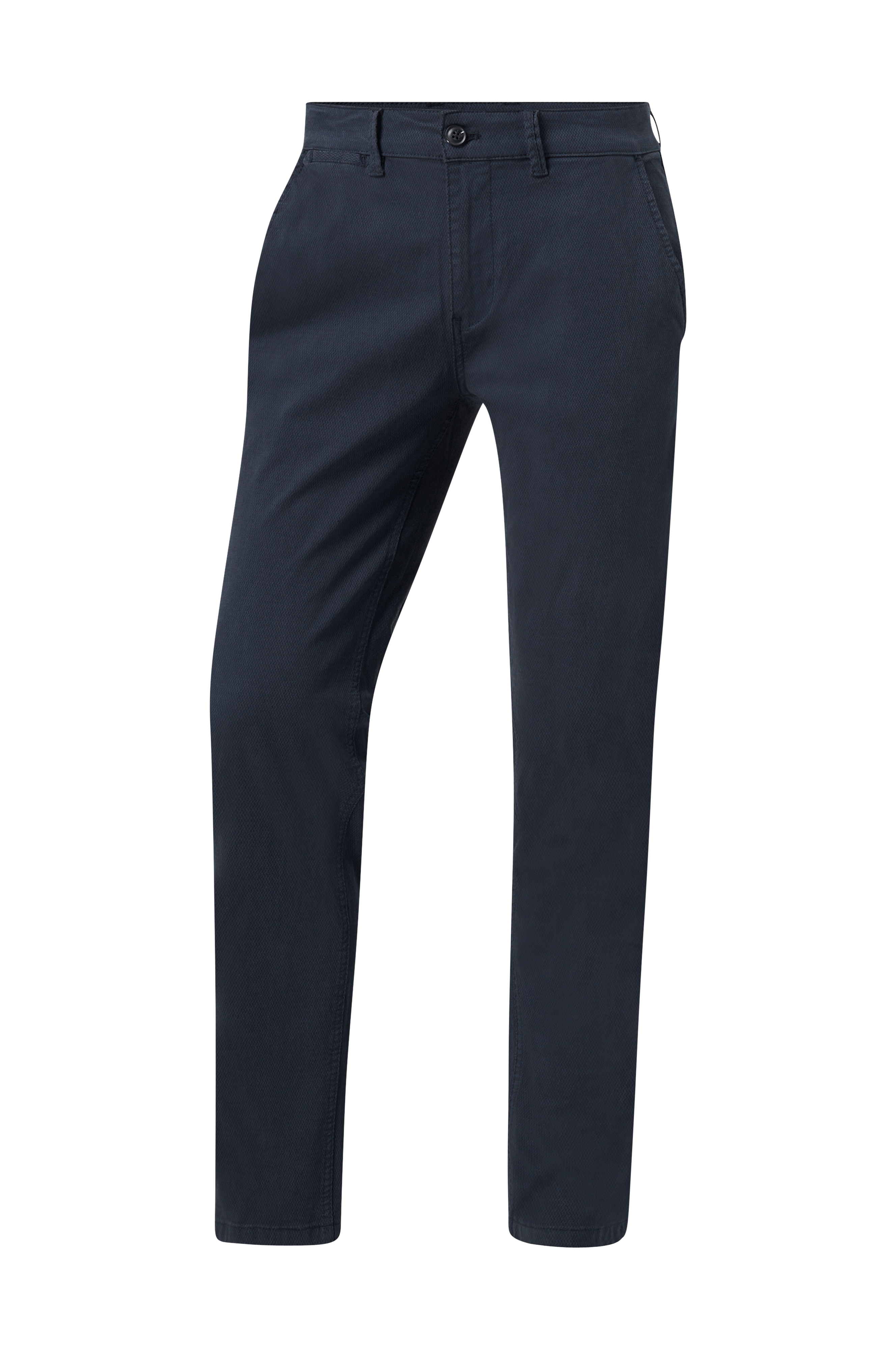 • Modell med avsmalnande benslut• Linning med hällor• Dragkedjegylf• Sneda fickor fram• Infällda bakfickor med knapp